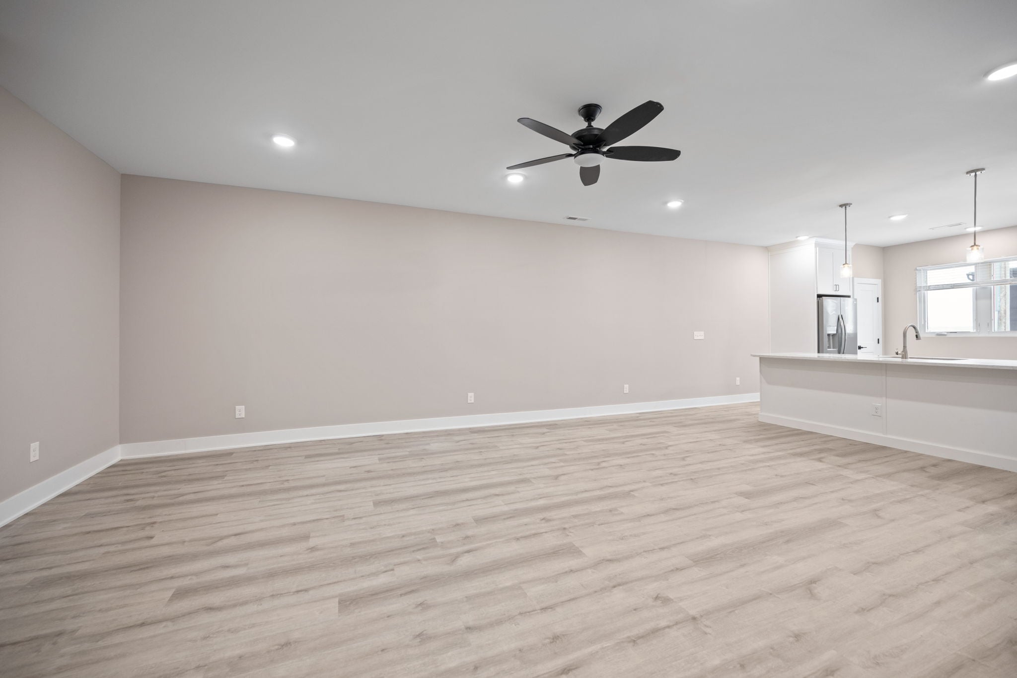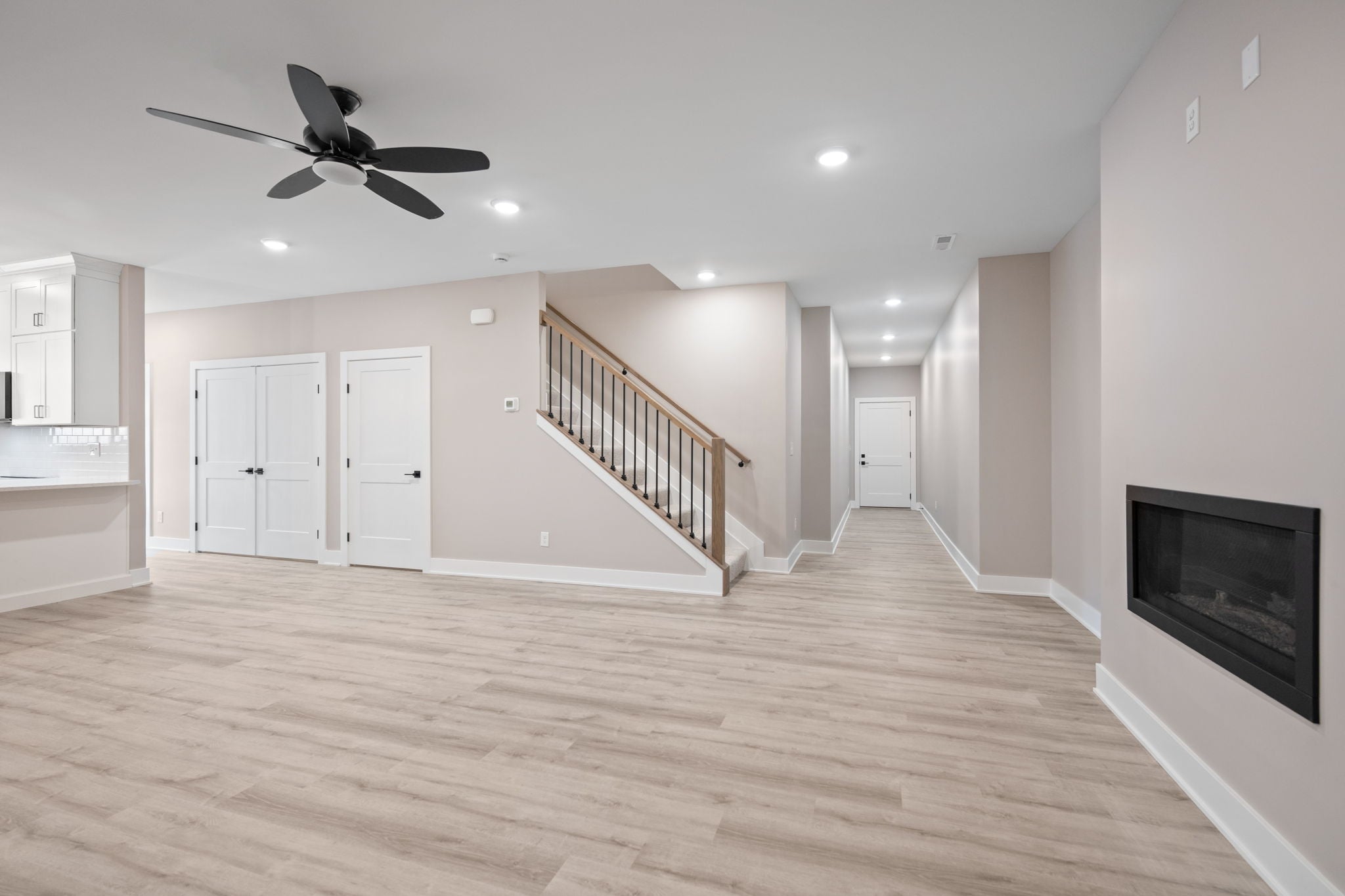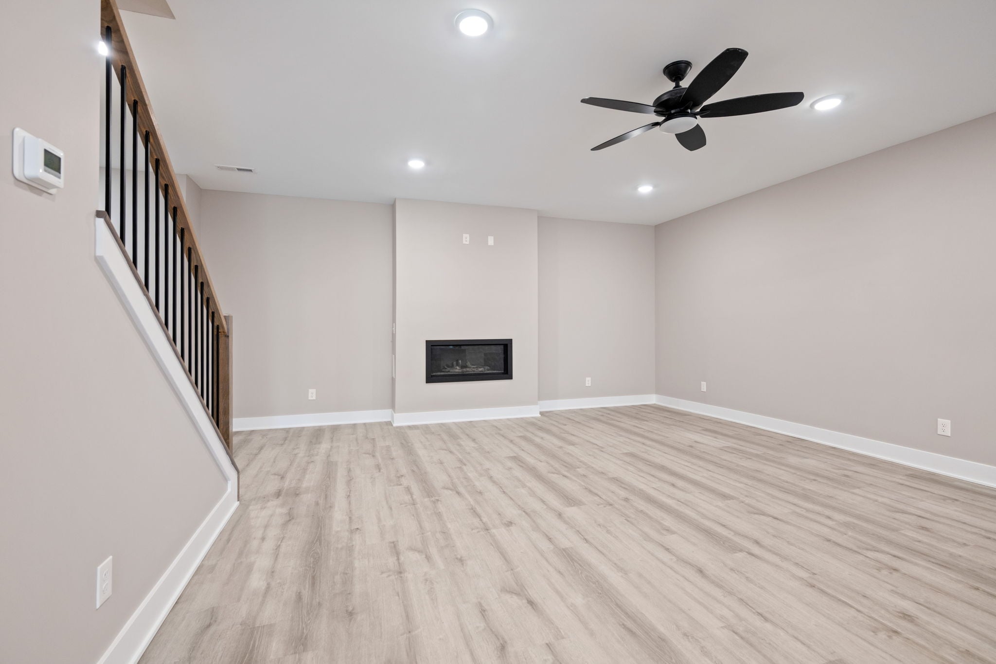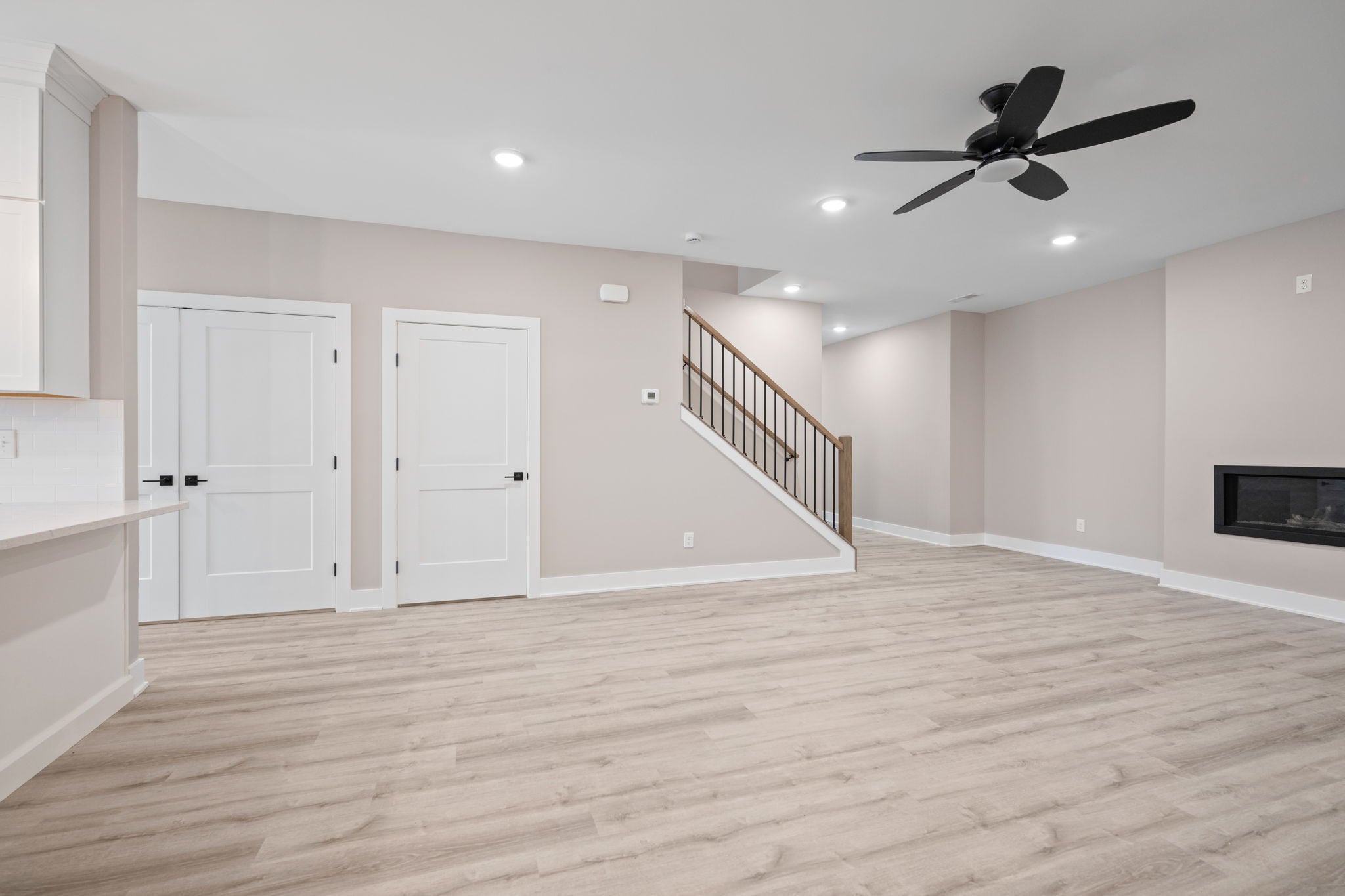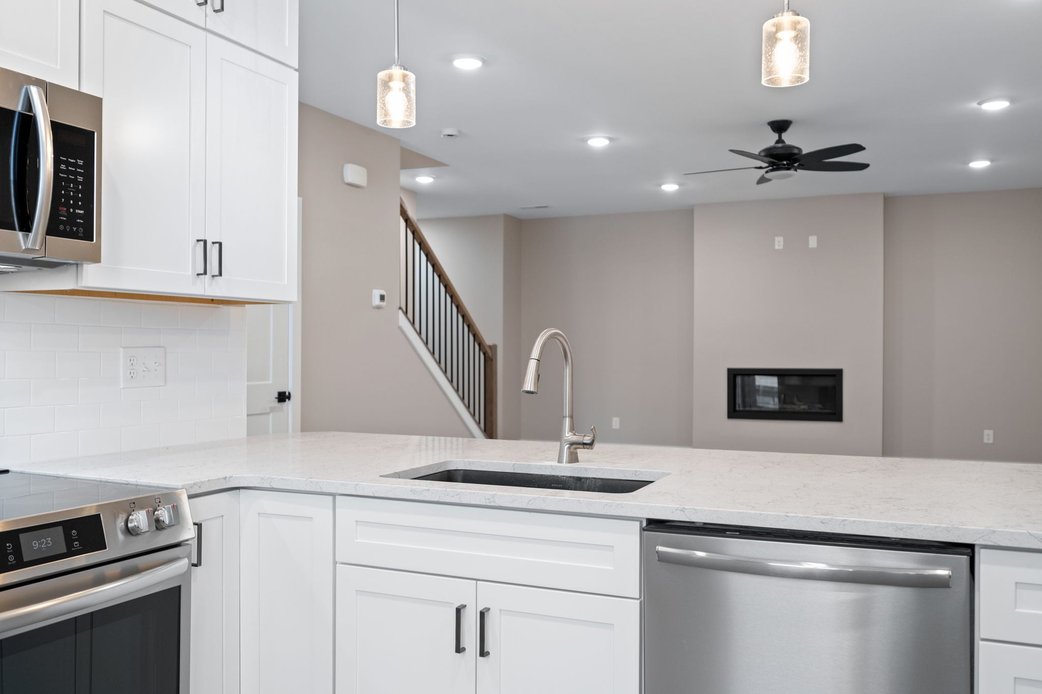The first floor offers an inviting living room accented by Showdown Elite LVL hardwood flooring and an Illusion built-in gas fireplace. The space flows naturally into the eat-in kitchen, complete with quartz countertops, soft-close cabinetry, a pantry, and convenient main-level laundry.