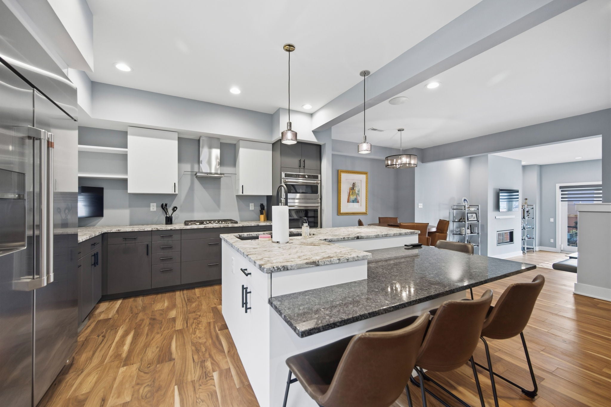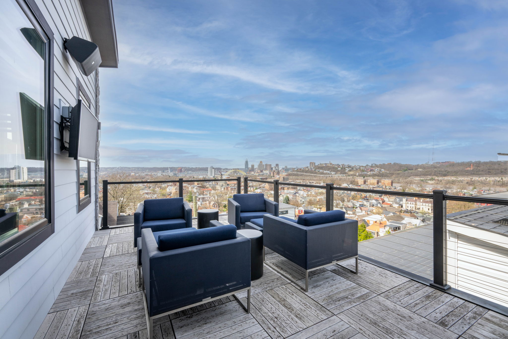 This spacious 3-bedroom, 2 full bath, 2 half bath residence spans 3,580 square feet and blends modern luxury with everyday functionality, all while offering stunning skyline views of Cincinnati, Ohio. An open layout filled with abundant natural light creates an inviting atmosphere from the moment you step inside. Just minutes from the Historic Fairfield Avenue District and only 10 minutes to downtown Cincinnati, the location offers both convenience and vibrant nearby amenities. Furniture is negotiable, including theater seating, allowing for a move-in-ready experience.