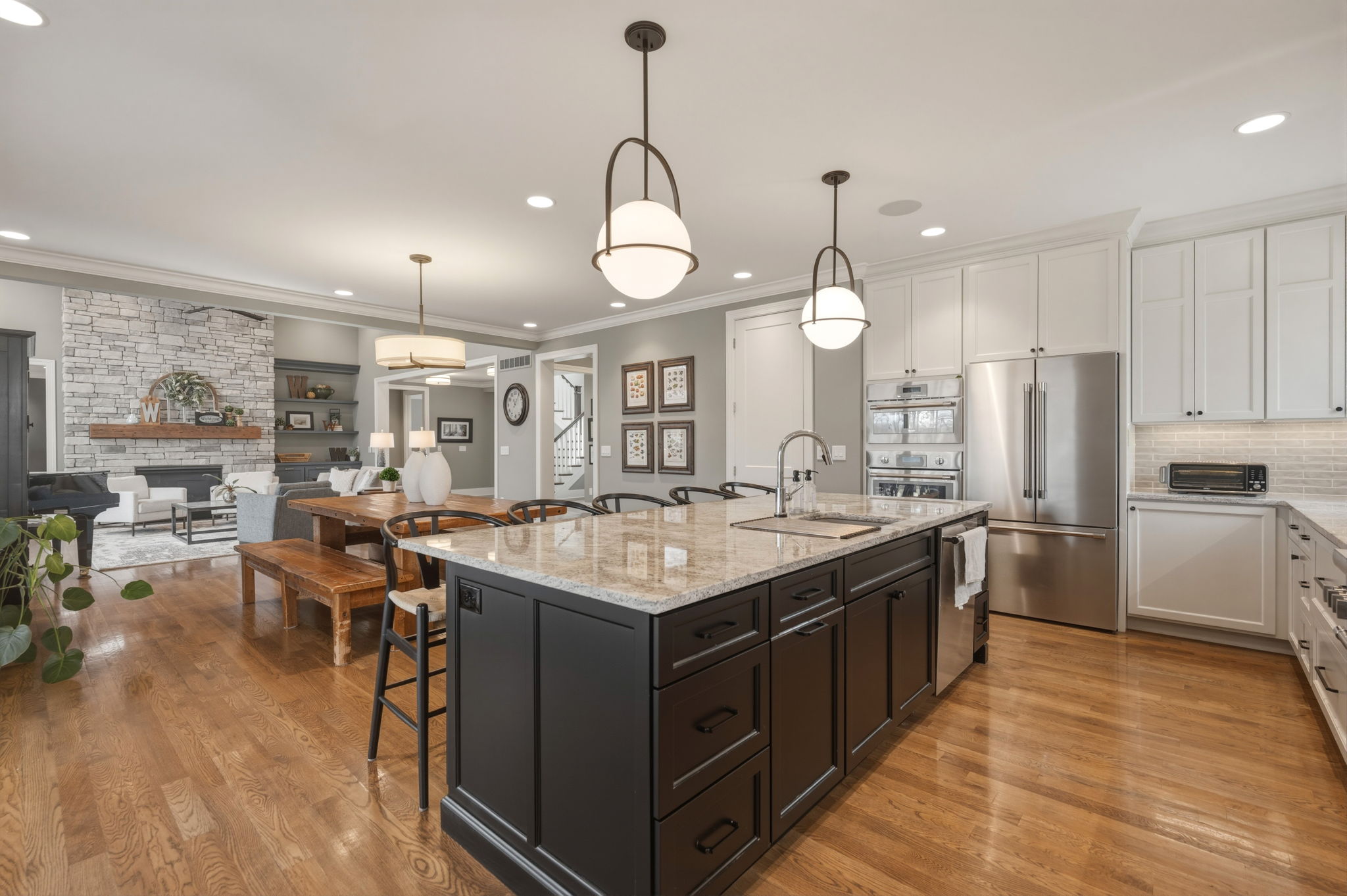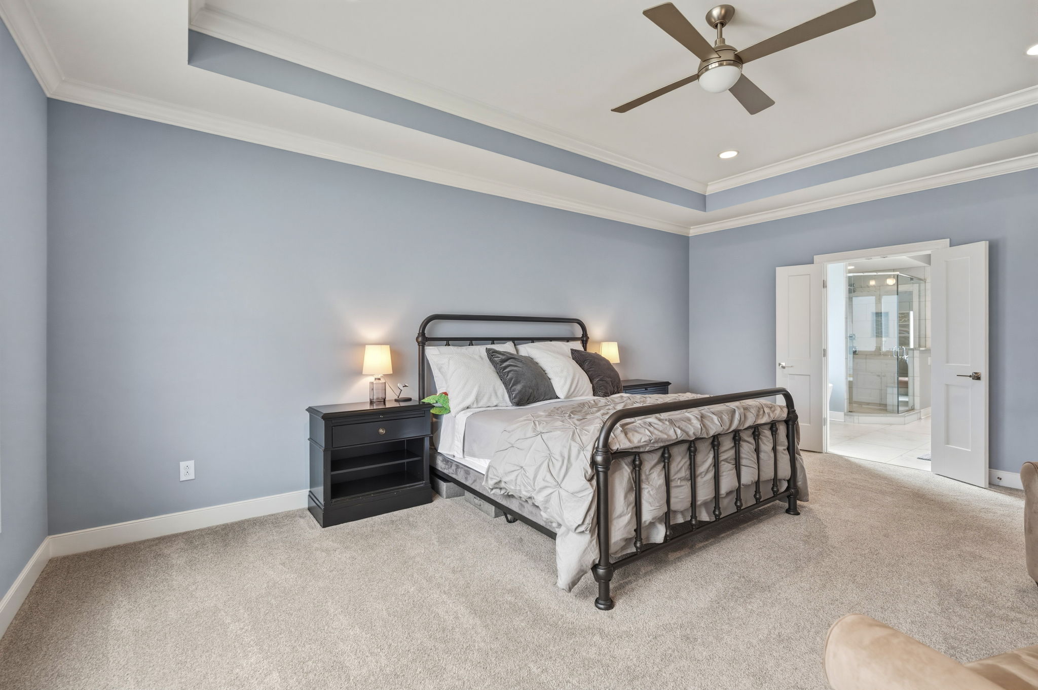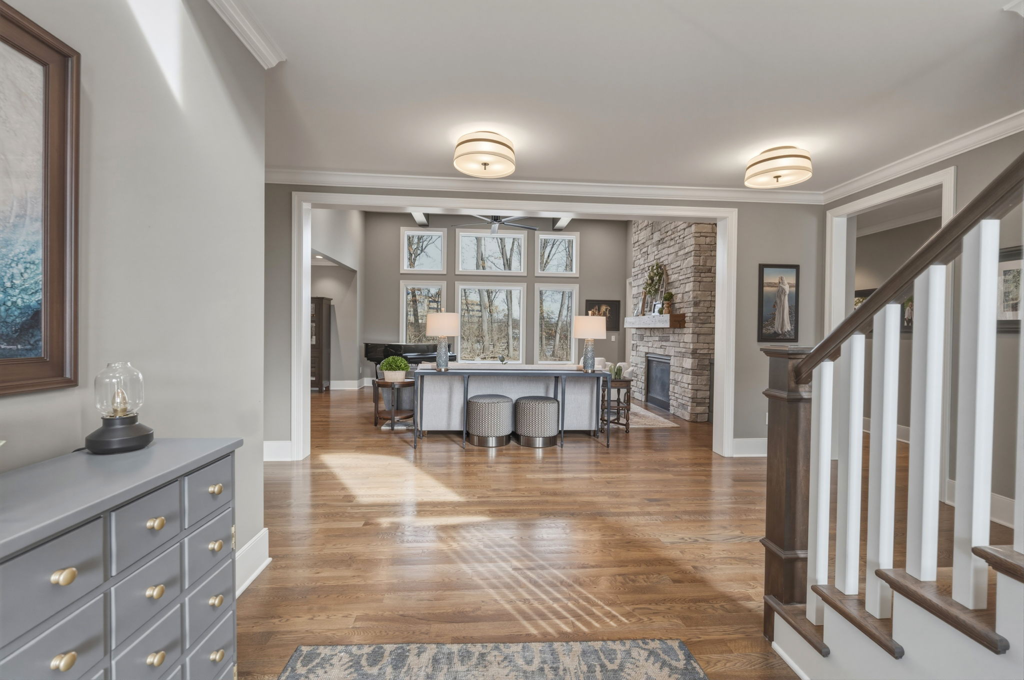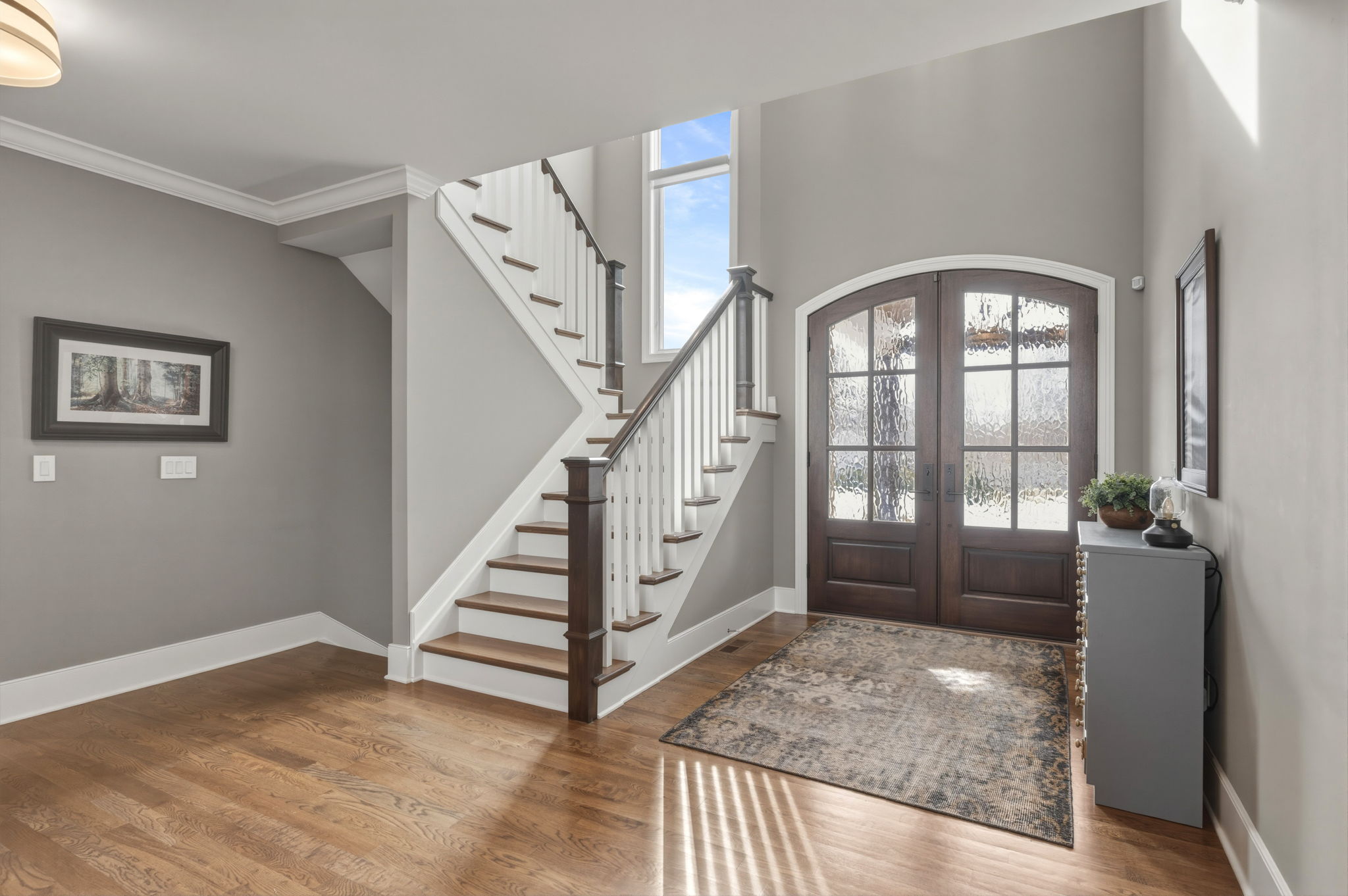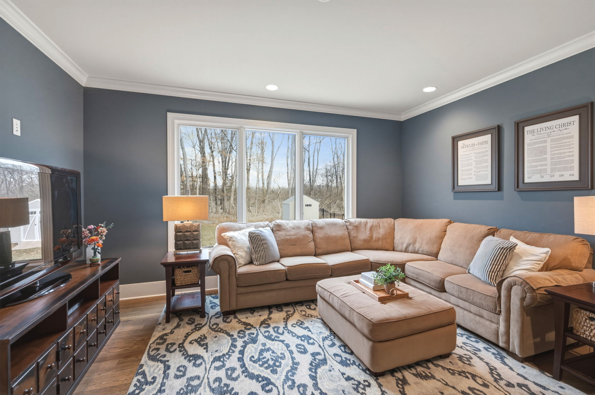 Stunning home in the sought-after Jones Farm subdivision offering a thoughtfully designed living space. Rich details like beamed ceilings, crown molding, and 9+ ft ceilings complement hardwood, tile, and carpeted floors throughout. Complete with a stunning gas fireplace, attached 3-car garage, and new backyard shed, this exceptional home offers luxury, comfort, and functionality at every turn.