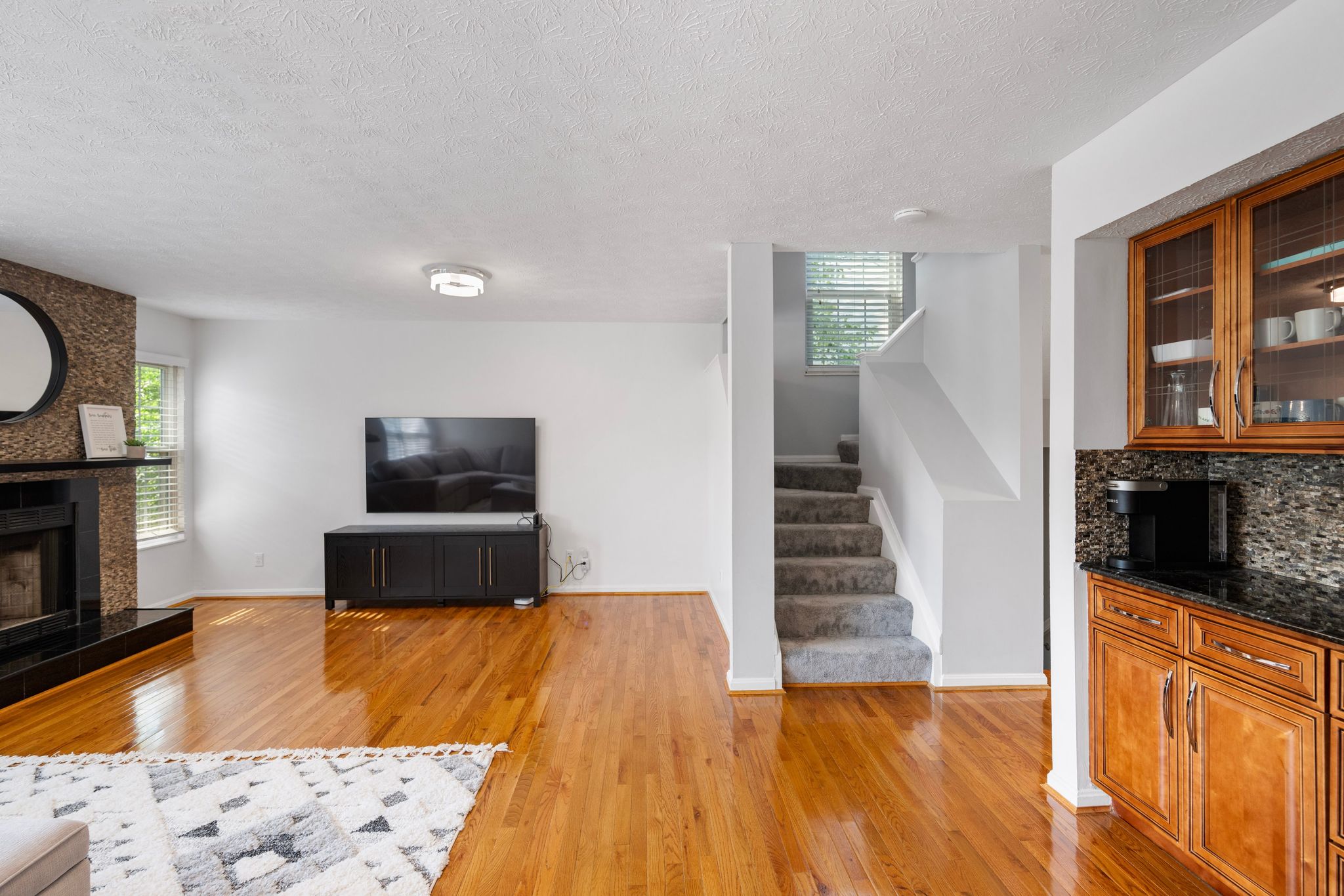 - Living Room with Wood Burning Fireplace & Dry Bar
