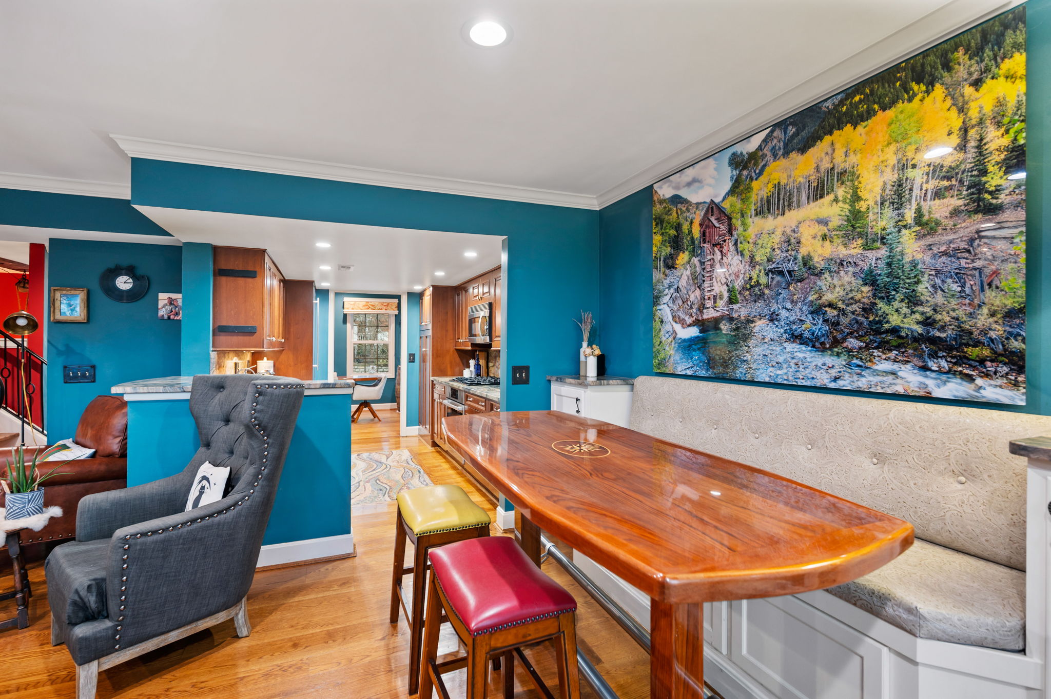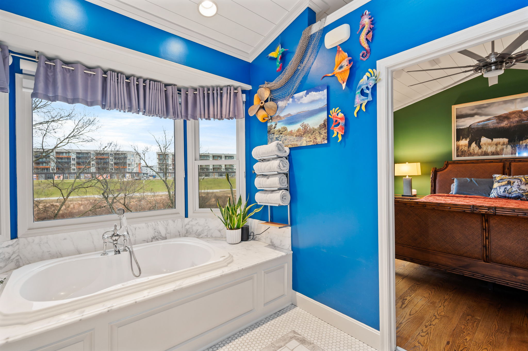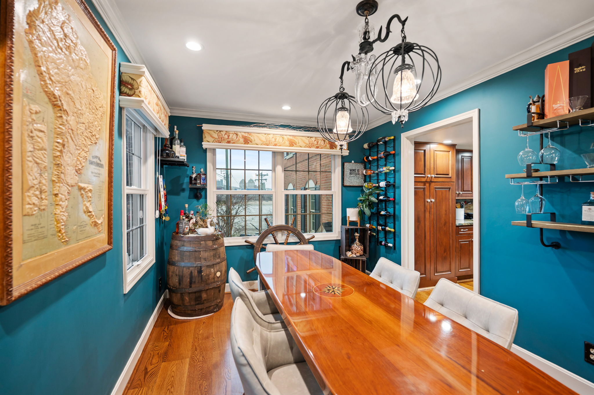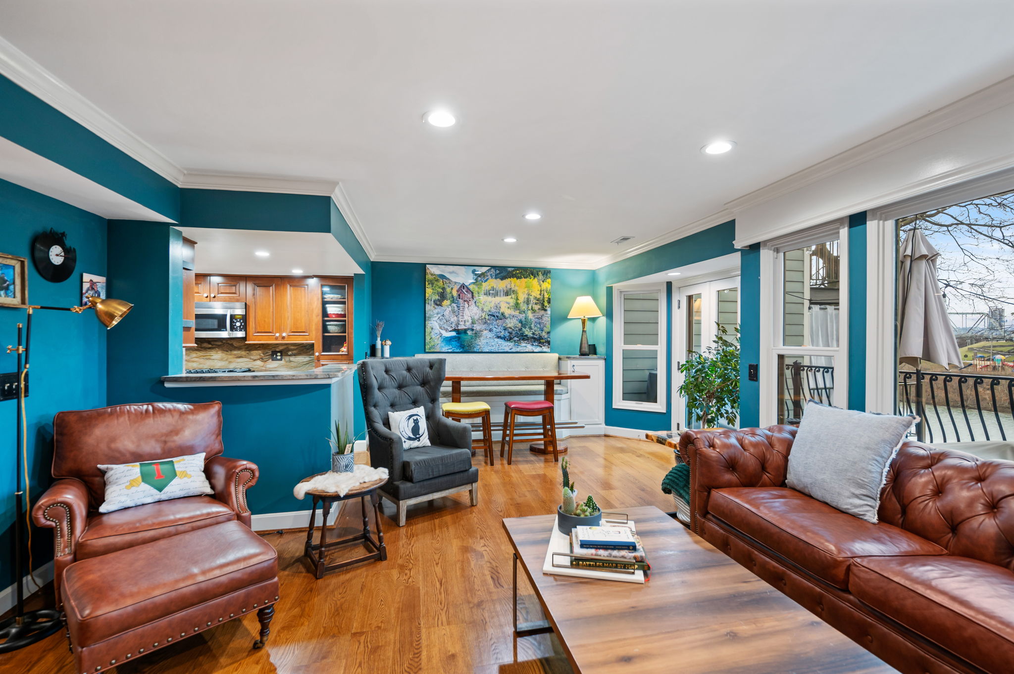Poised along the riverbank in Covington's coveted Historic Licking Riverside District, this exceptional three-story townhouse offers some of the most breathtaking views in the tristate! From the moment you enter the foyer, a soaring ceiling sets the tone for a home that is equal parts dramatic and refined. The flexible office space stands out with exposed brick and a classic tin ceiling, while the updated kitchen features modern stainless steel appliances and a charming breakfast nook that walks out to one of three expansive decks, each level offering direct outdoor access and unforgettable views. Additional deck underside- roofing updates ensure year-round and all-weather enjoyment. The converted fireplace burns both wood and gas and is accented by a custom mantle, creating a cozy yet stylish focal point. Upstairs, spacious third-floor bedrooms include a stunning primary suite with river and city views, a bay window, modern tiled ensuite bath, and dual shower heads. With three tiers of decking, incredible natural light, and a truly irreplaceable location, this home is a rare opportunity to own a front-row seat to one of the most iconic views in the region.