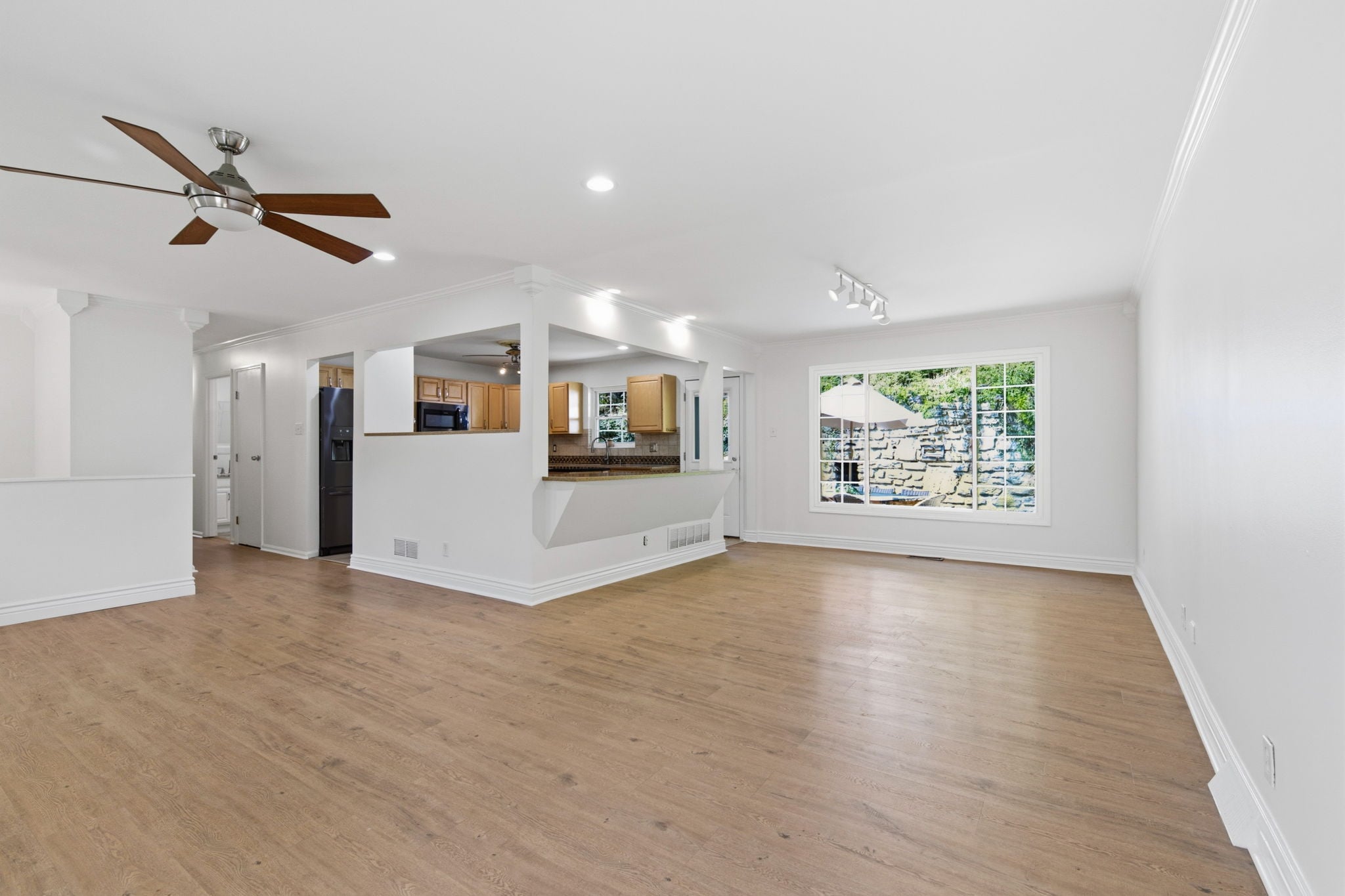 Charming kitchen featuring a spacious center island, perfect for cooking, gatherings, and everyday living.