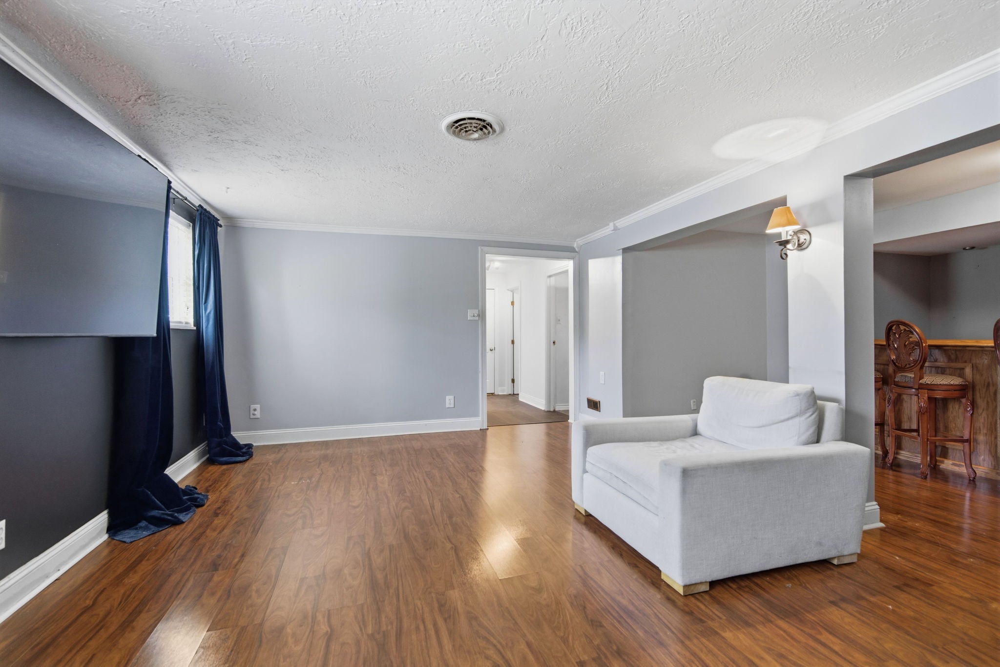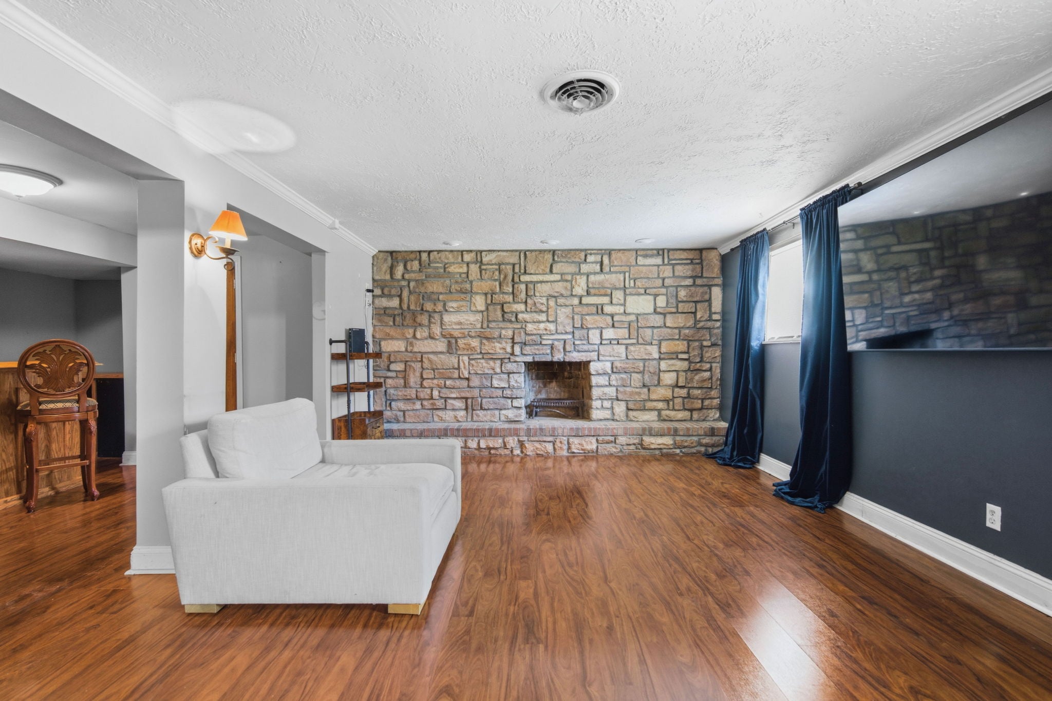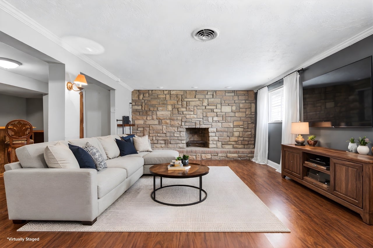 The finished lower level offers a spacious rec room or family room perfect for movie nights, plus a stylish dry bar for entertaining.