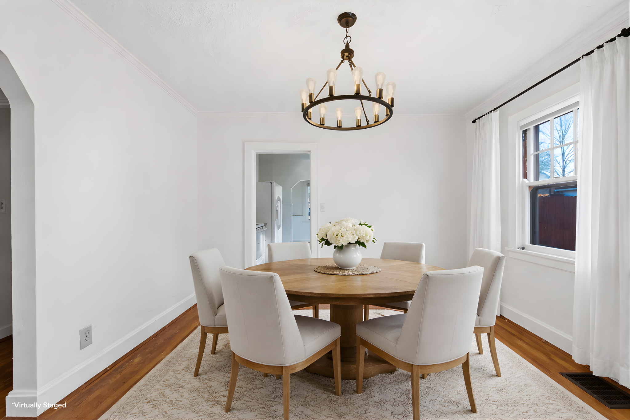 Sunlit Living Room & a formal dining room off the kitchen for dinner parties, too! With first-floor living, this home offers both comfort and ease.