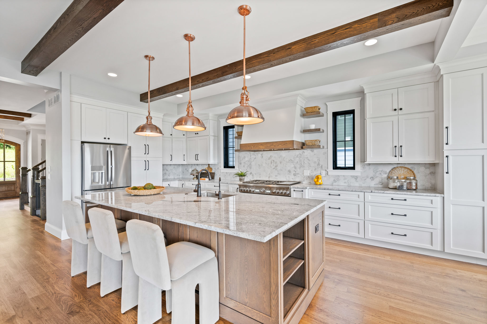 Inside, you'll find high-end finishes that are sure to impress. From the custom-built cabinetry and designer closets to the rooftop bar and deck perfect for entertaining with sweeping river vistas, every detail has been thoughtfully designed. Enjoy effortless living with an elevator servicing all five floors, automatic blinds, and a golf simulator for some fun after a long day. The home also features a second kitchen, ideal for hosting guests or preparing meals for special occasions.