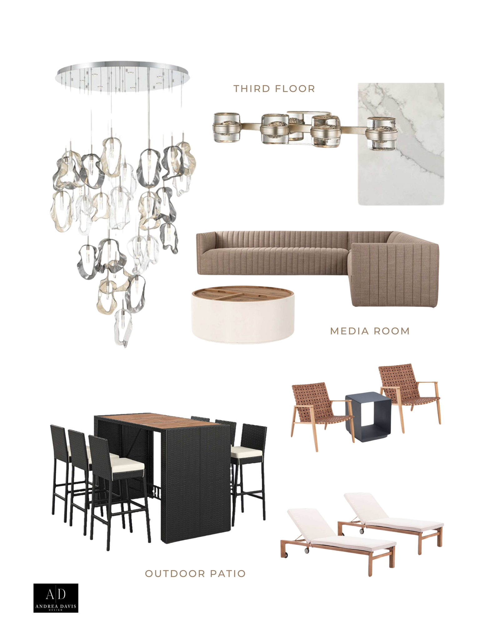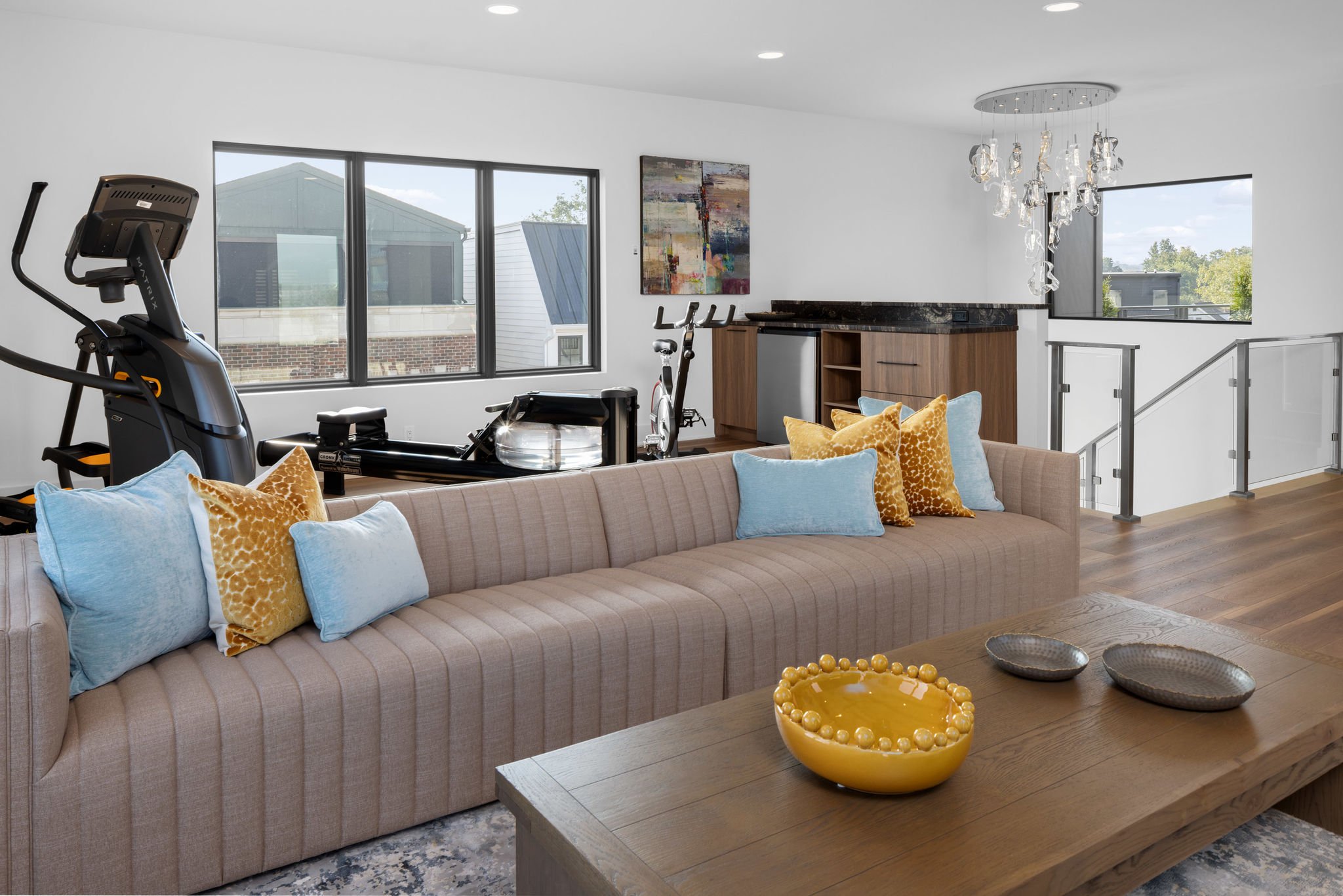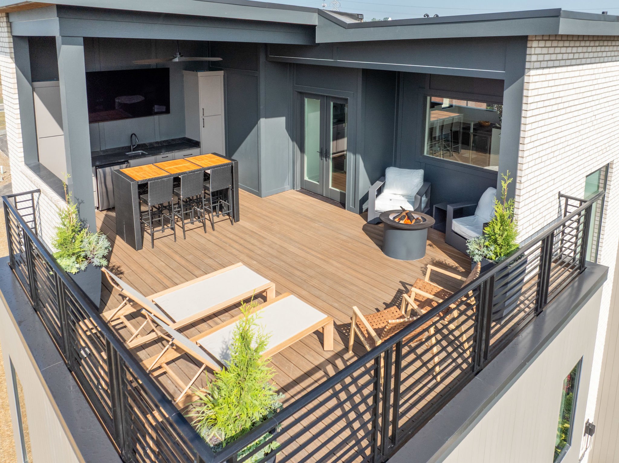 This thoughtfully designed 4,000+ sqft, 3-bedroom, 4.5-bathroom home offers a modern open-concept layout perfect for entertaining. The main level boasts a spacious kitchen with a large island, a deck off the dining room, a walk-in pantry, and a welcoming great room with built-ins and a fireplace. On the second floor, you'll find two elegant bedroom suites, a convenient laundry room, and a versatile office/loft space. The rooftop level features a media room, a full bath and access to a luxurious outdoor living space. 10ft ceilings in the lower level, 1st and 2nd floors, plus two HVAC systems for maximum comfort. Built by Classic Living Homes.