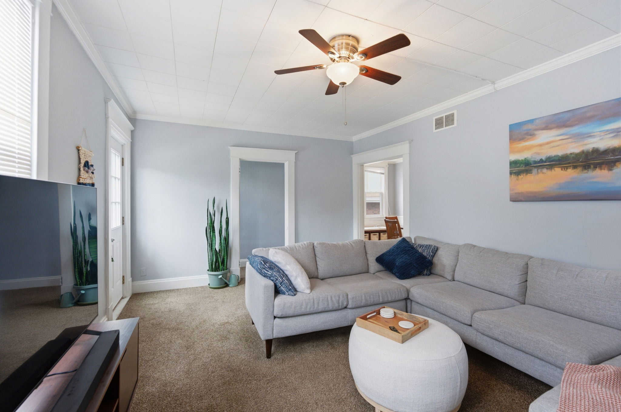 Updated kitchens with stainless steel appliances add modern style, while major improvements include a newer roof (2023), two newer furnaces, one newer AC, and an updated electrical panel.
