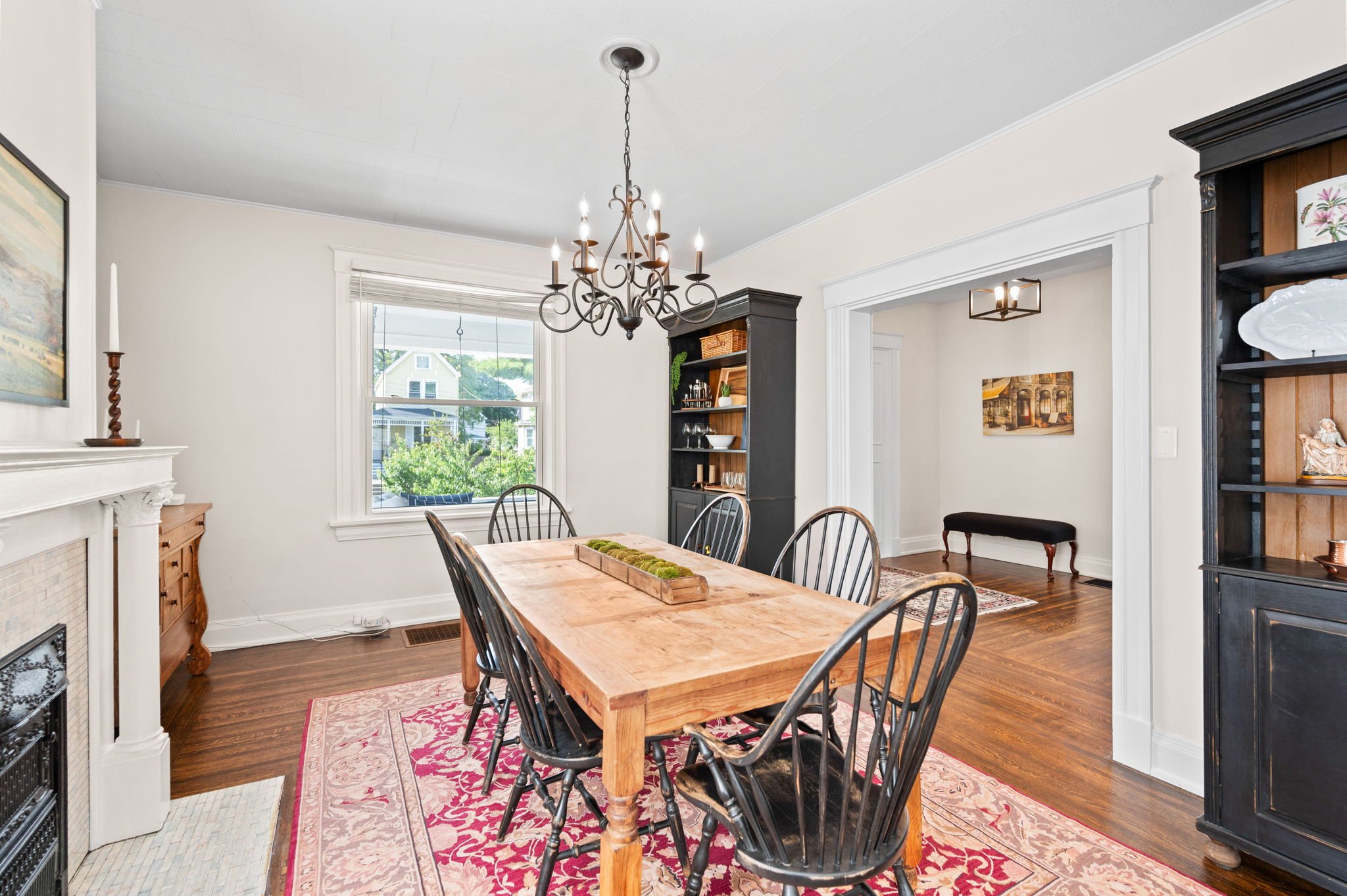 This home is filled with charm, featuring tall ceilings, rich hardwood floors, original stained glass, and countless cozy details, all enhanced by thoughtful updates throughout