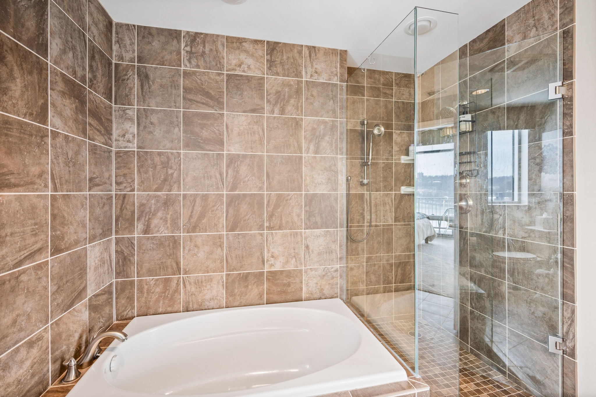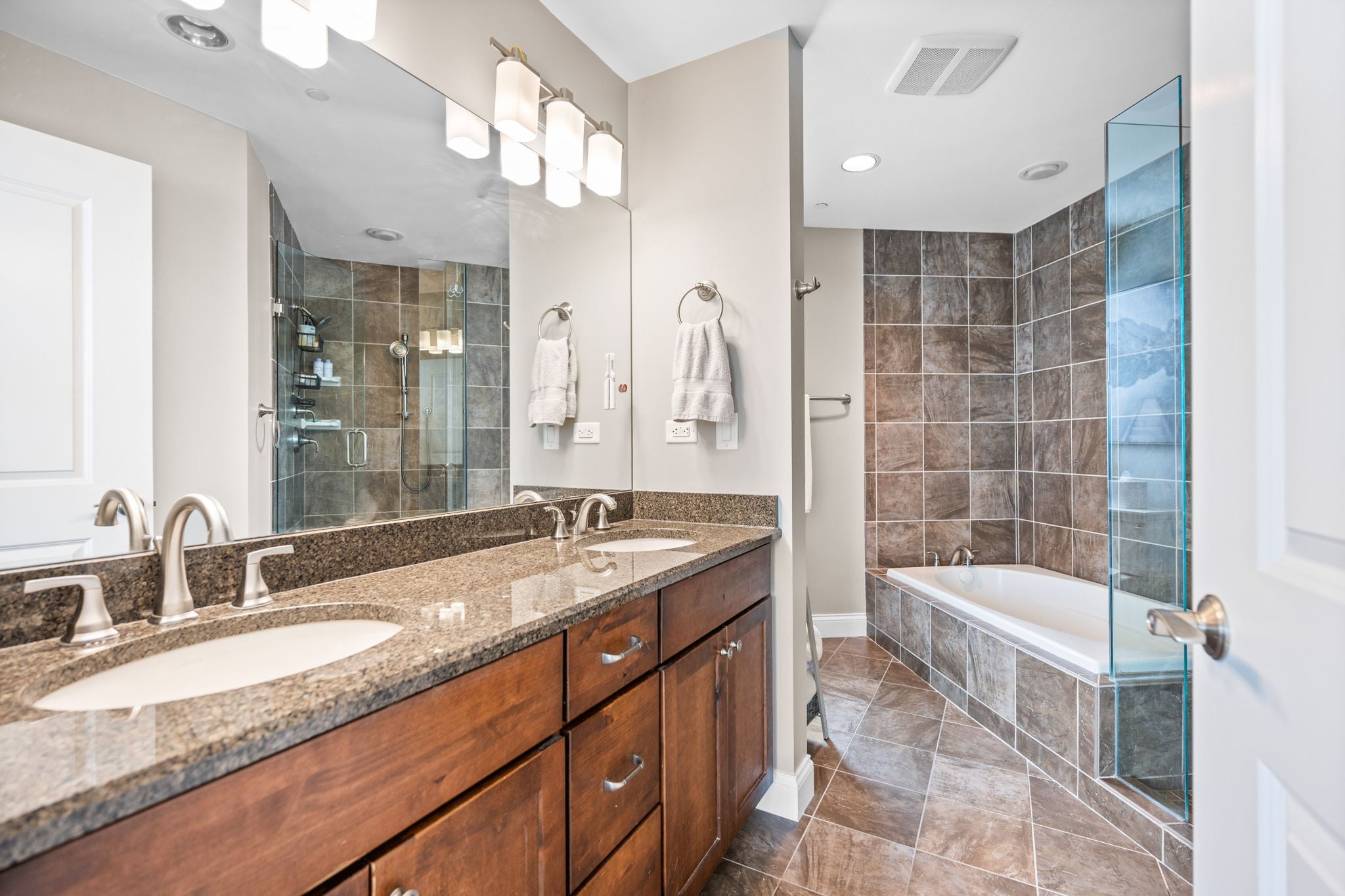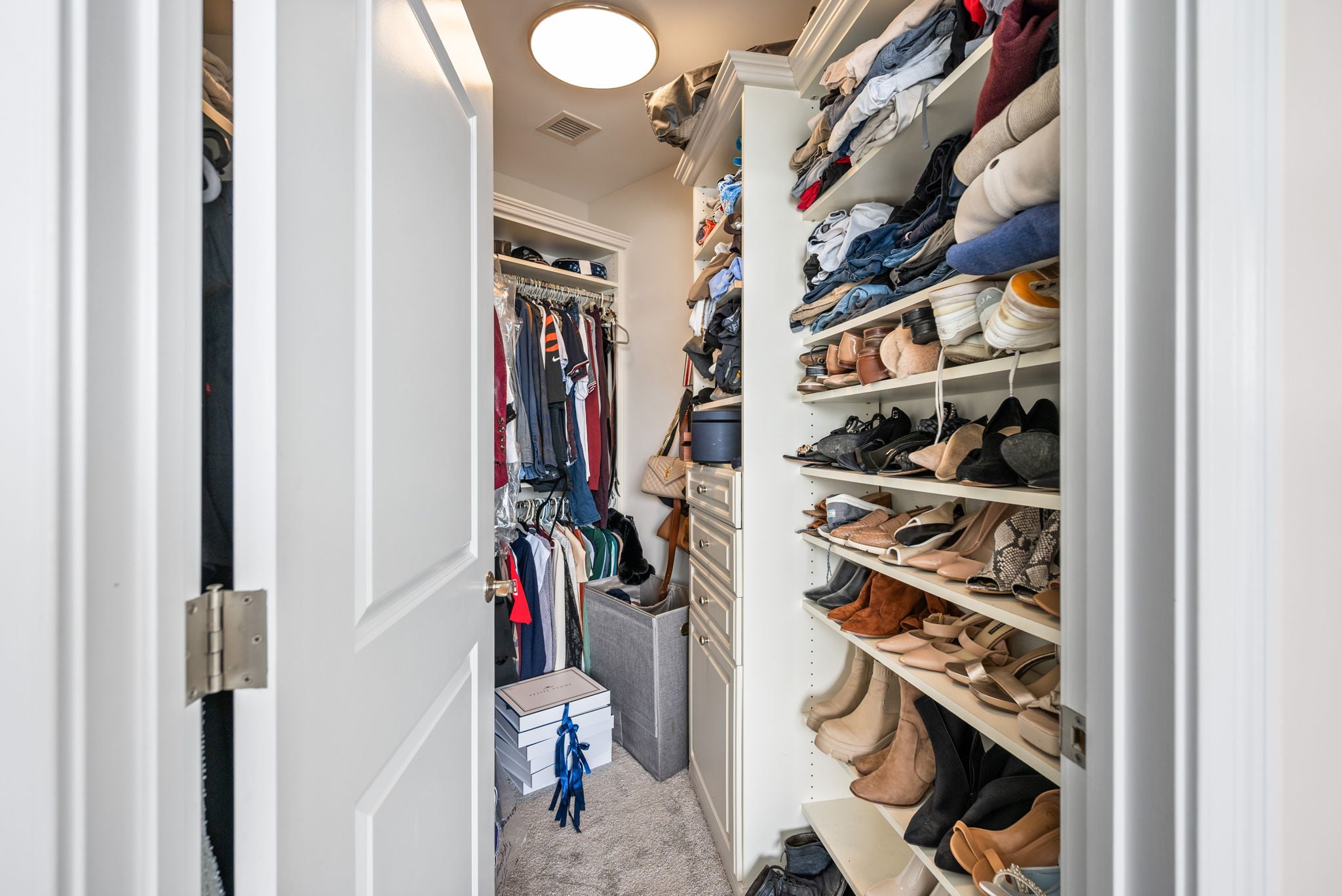 The spacious primary suite offers a double vanity, beautifully tiled shower and walk-in closet.