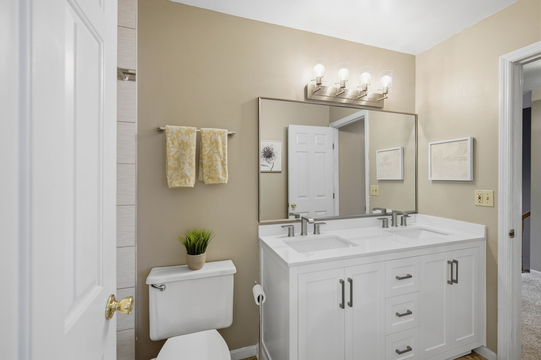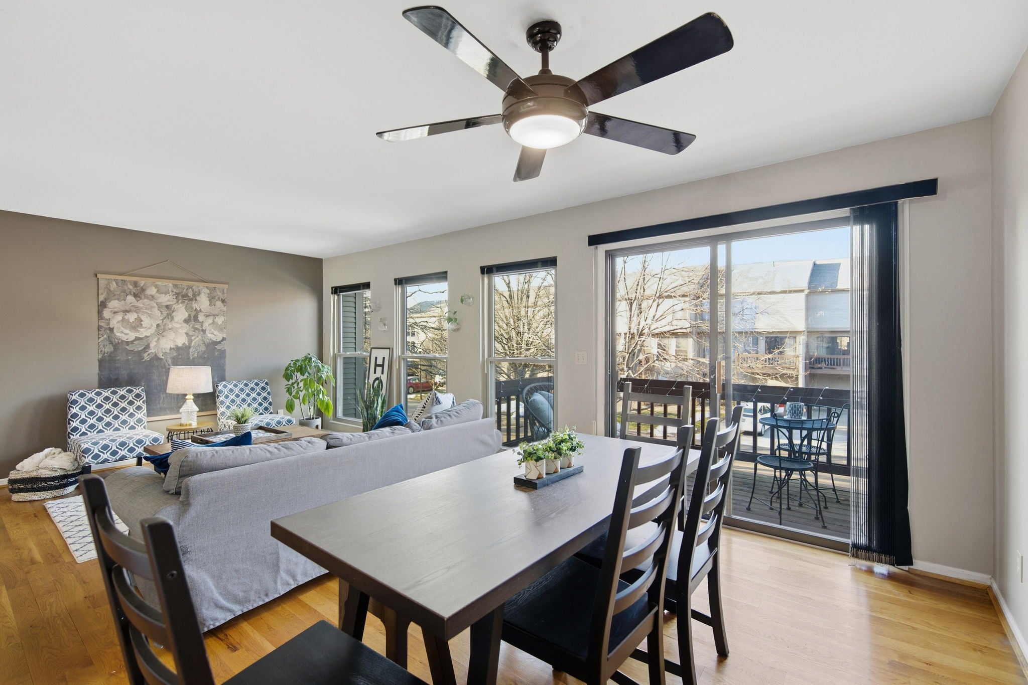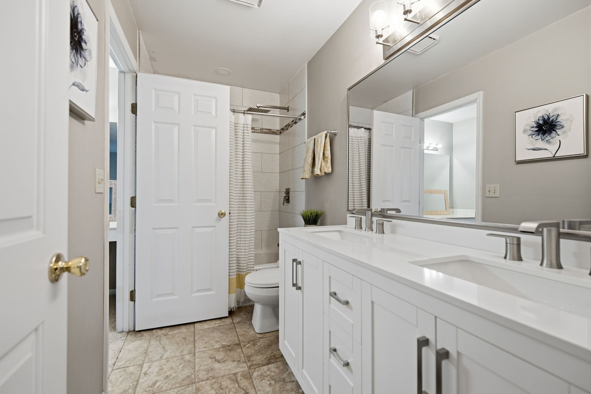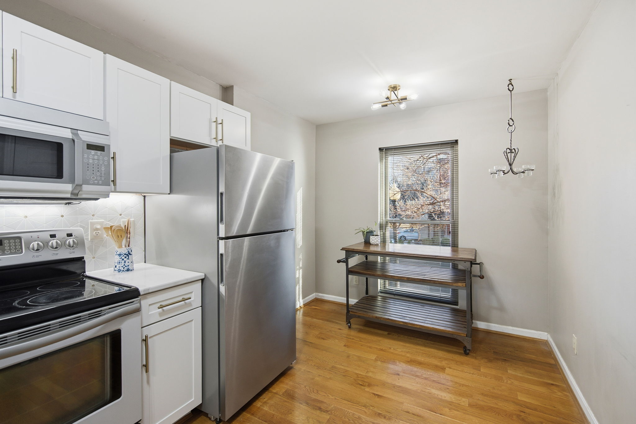 Hardwood floors run throughout, complemented by a newly updated kitchen and beautifully refreshed baths with trendy finishes.