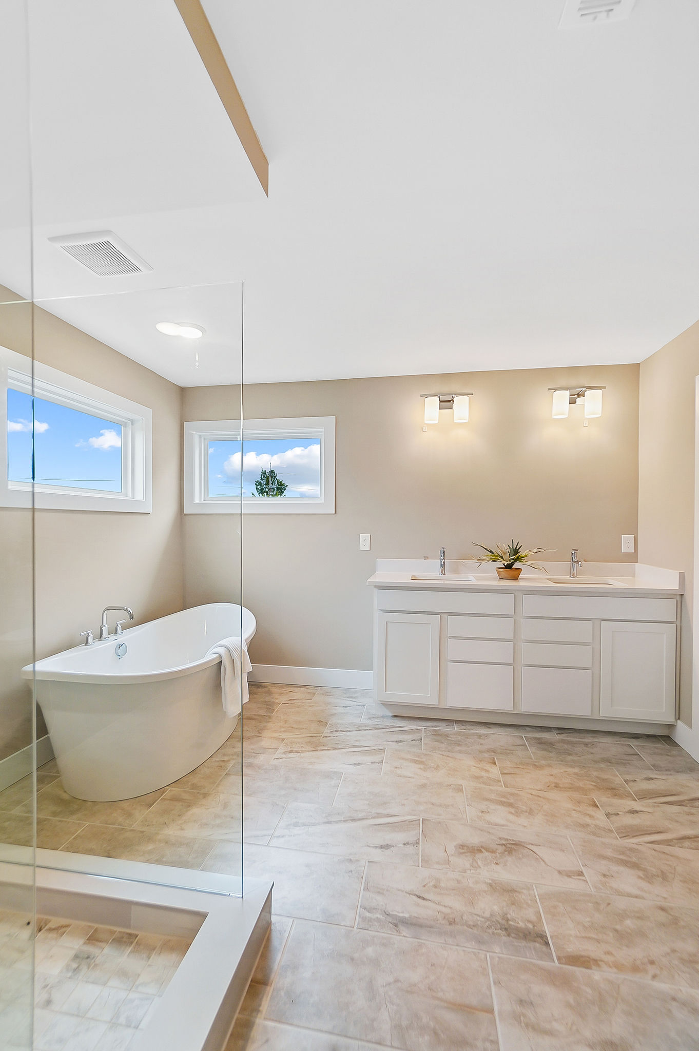 The spacious primary ensuite includes a walk-in closet, double vanity, soaking tub and standing shower. Plus, access to second floor laundry.