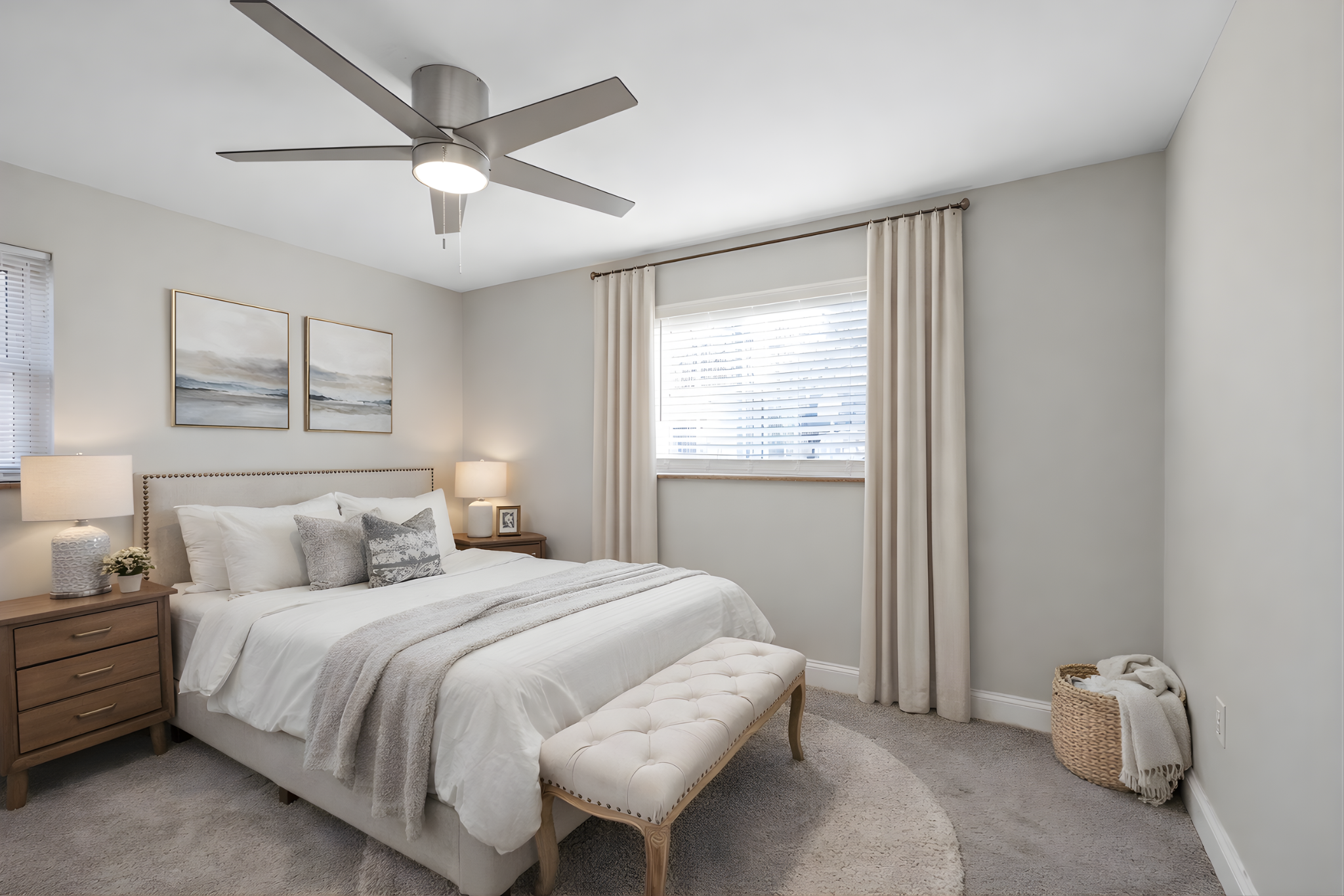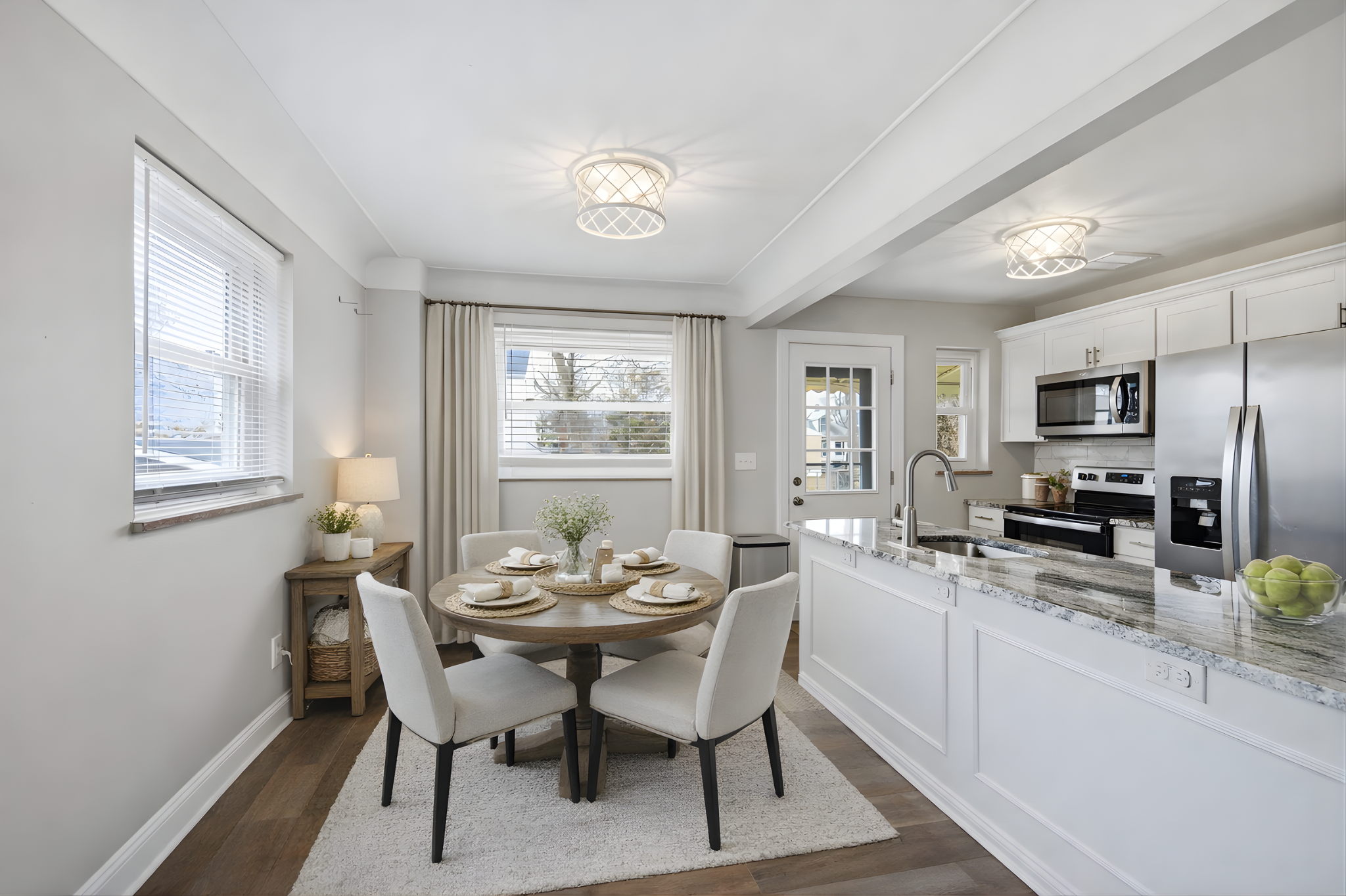 The kitchen features stainless steel appliances, granite countertops, and a clean, neutral palette that flows seamlessly throughout the home.