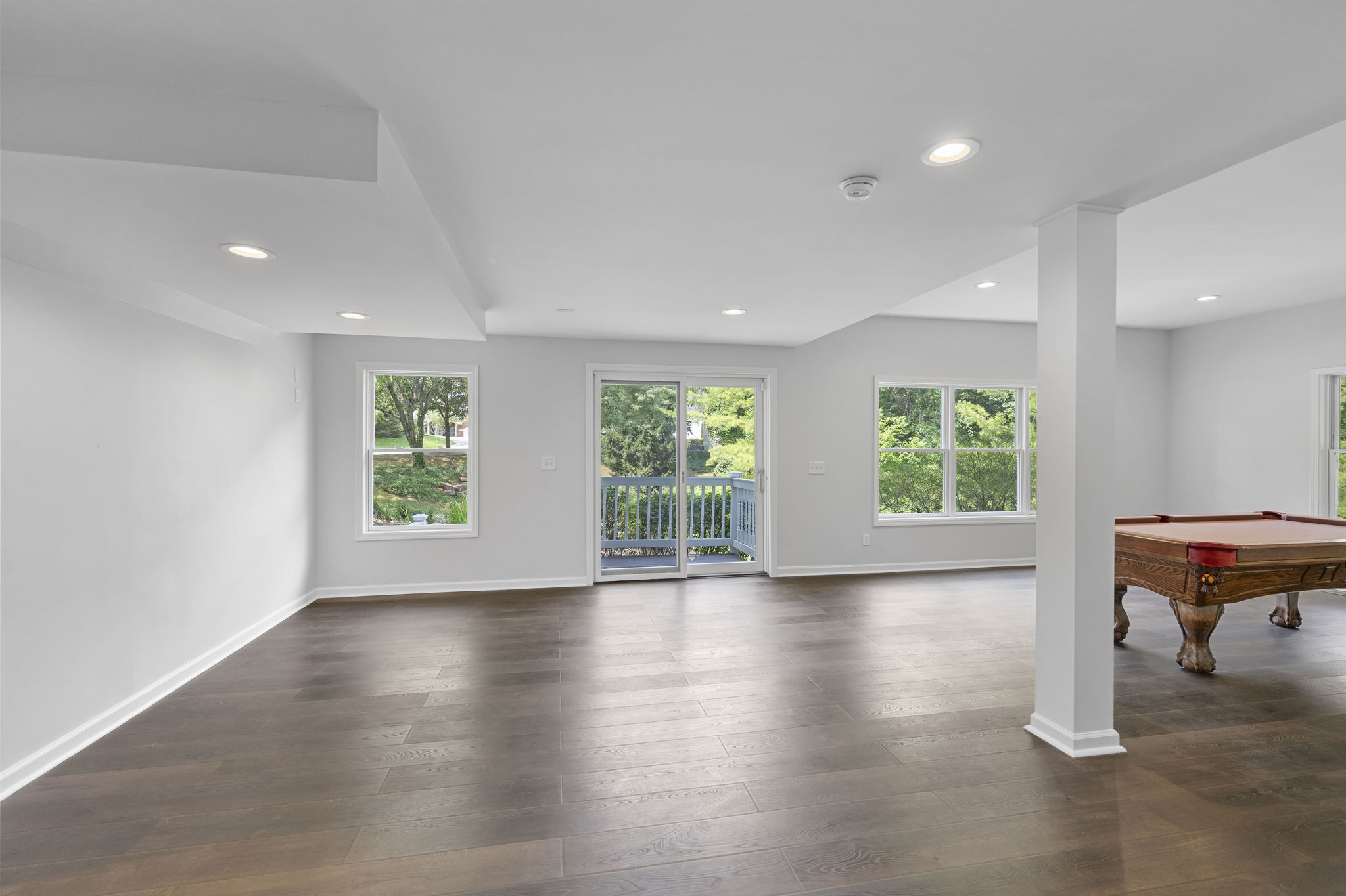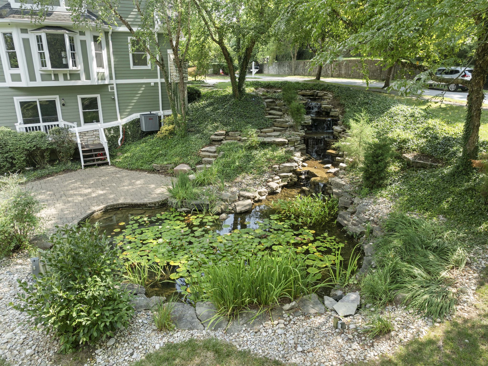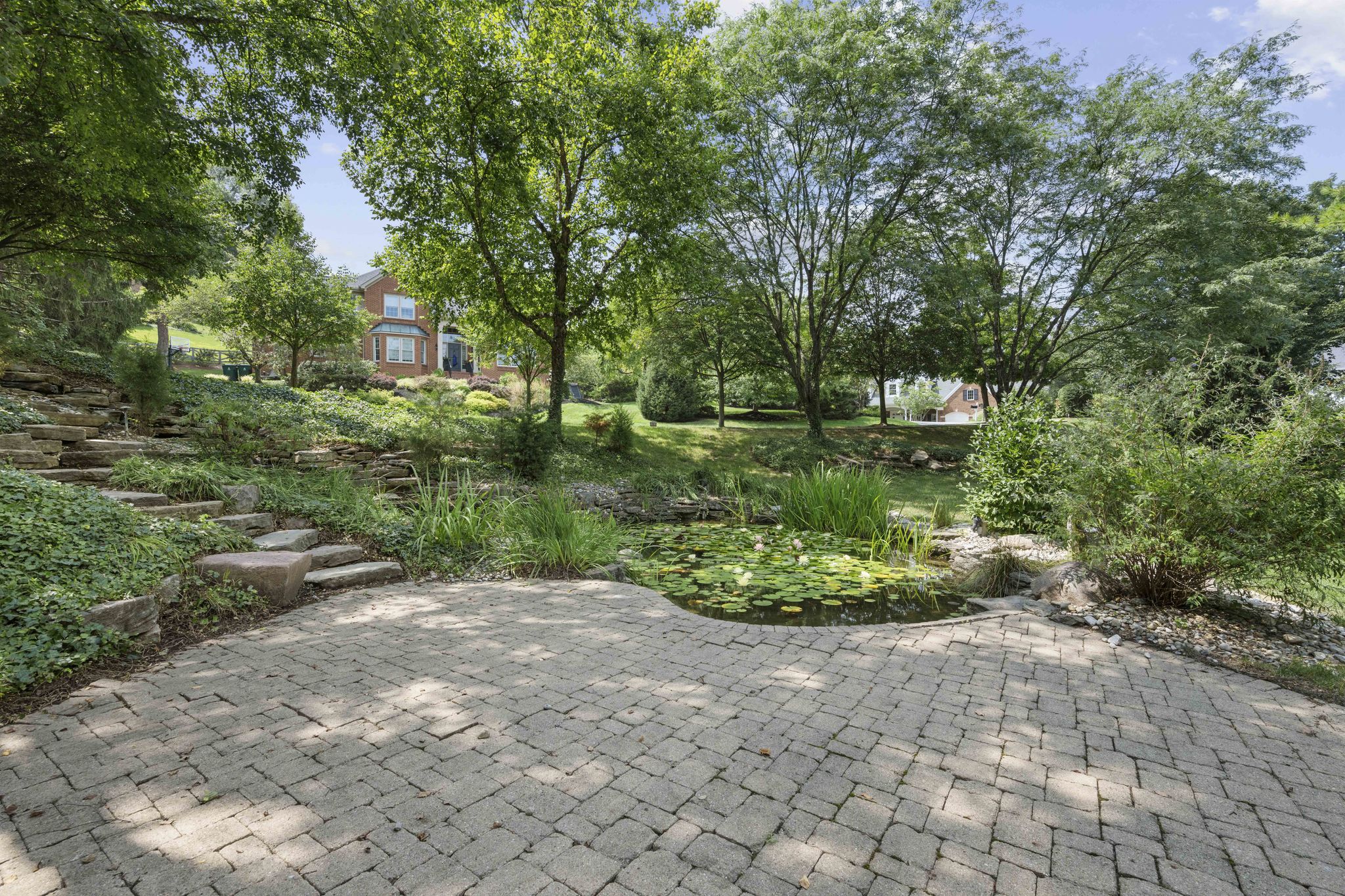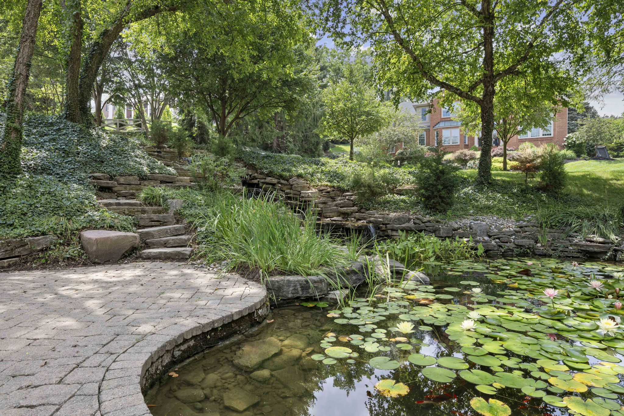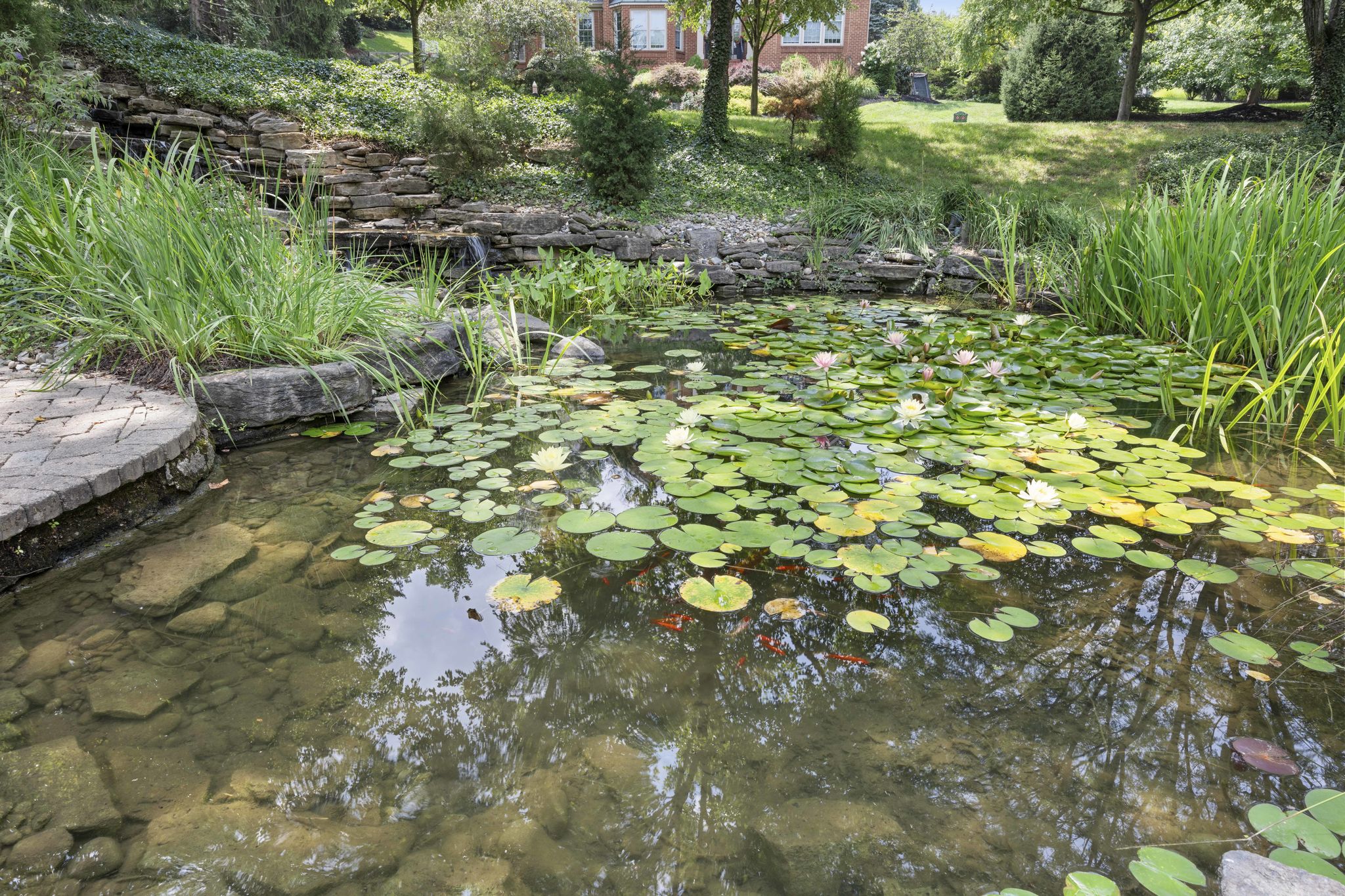 The finished lower level walks out into the private, wooded backyard. Welcome to your retreat from everyday life. Relax on your large patio overlooking the peaceful waterfall and Koi pond.