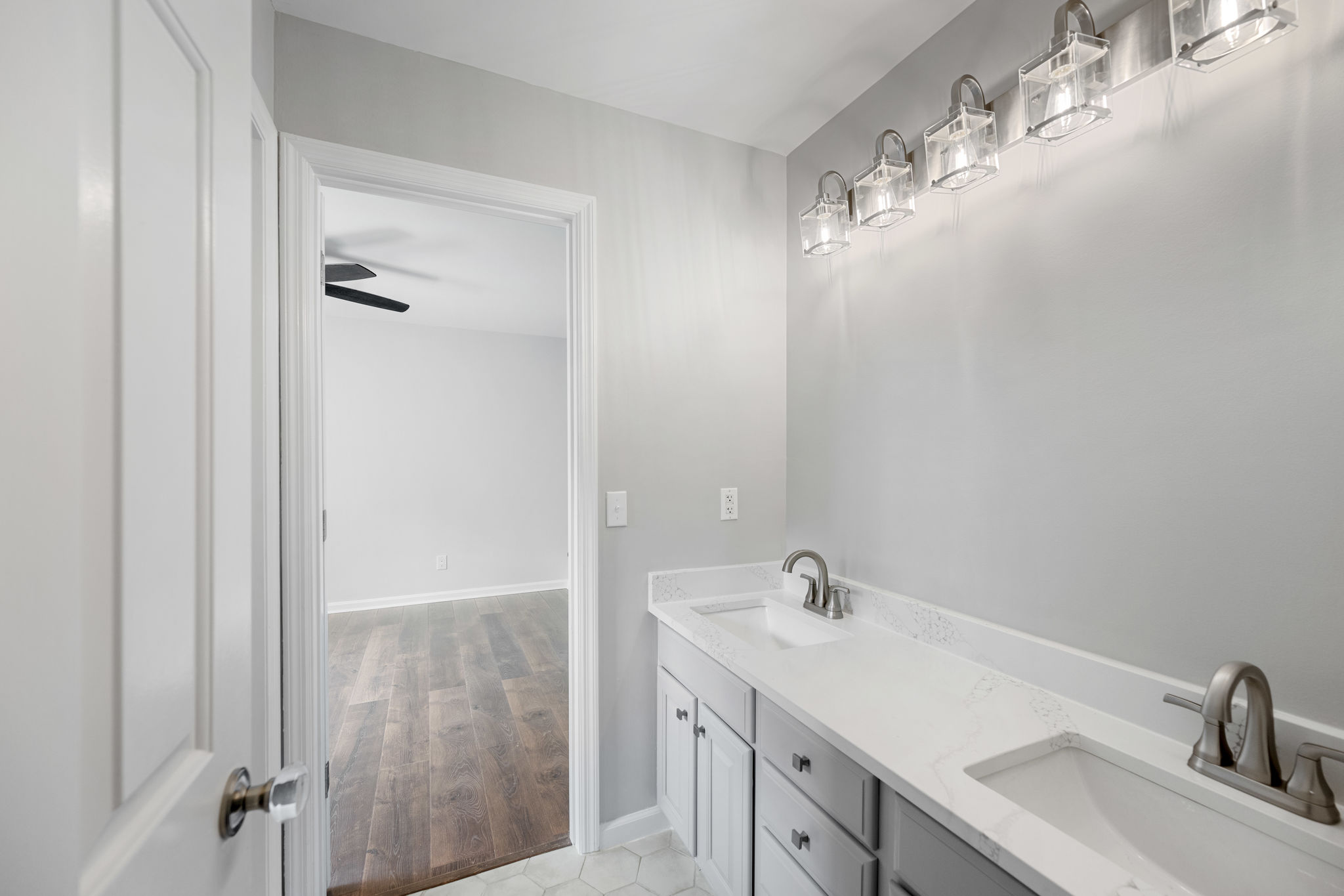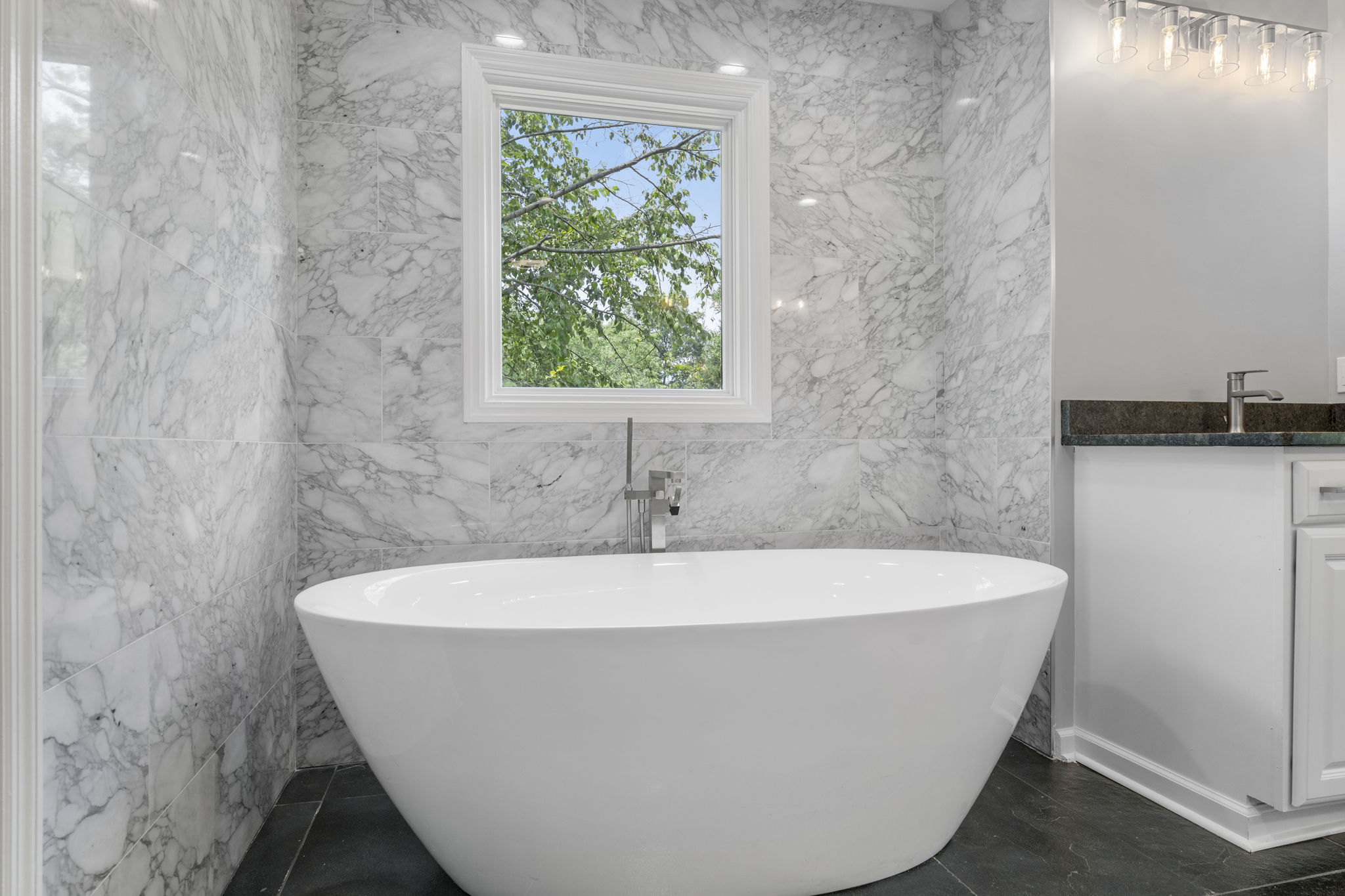 The kitchen has been remodeled and is full of upgrades like new faucets, counters, backsplash, 8 burner gas stove, hood and painted cabinets. The breakfast nook walks out onto the deck overlooking the wooded backyard.