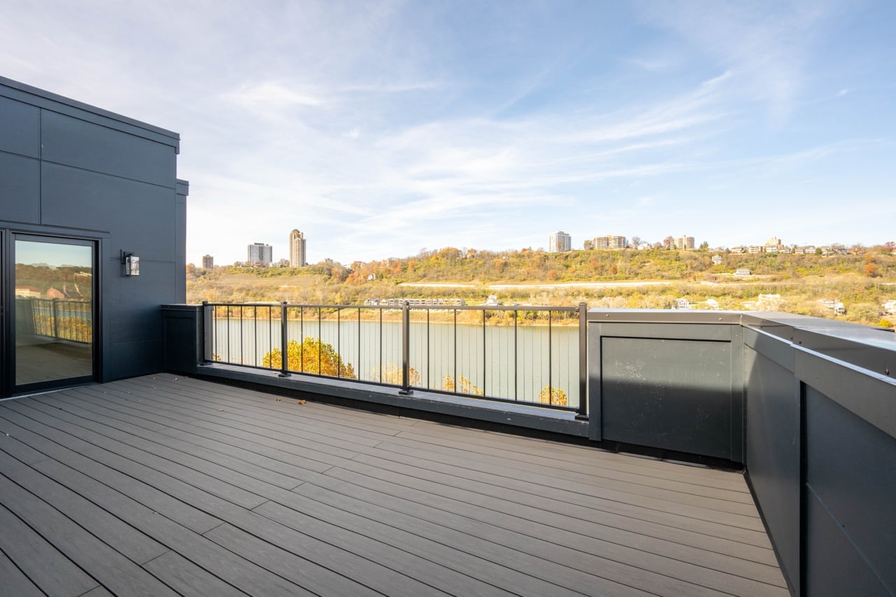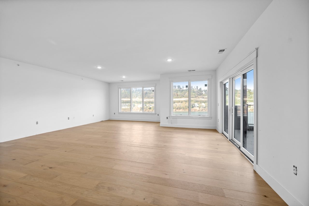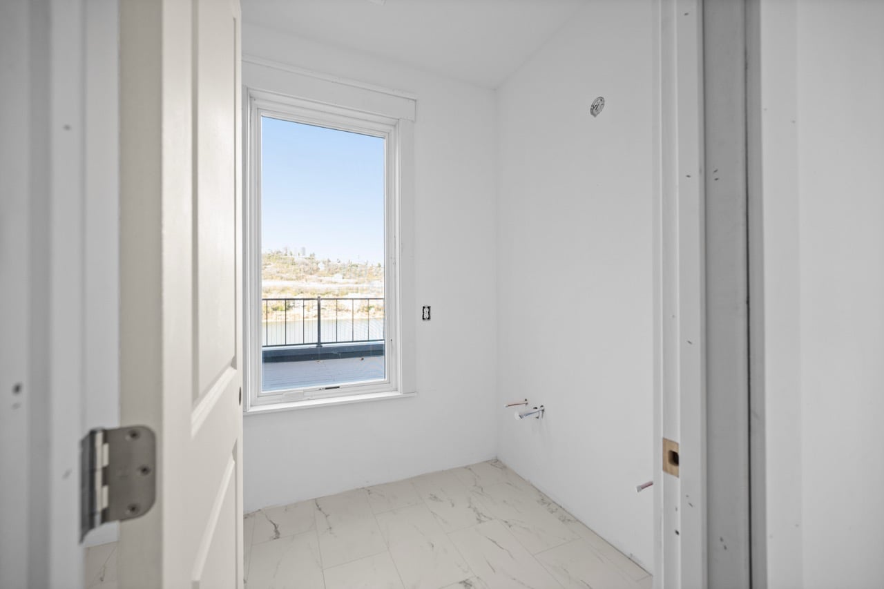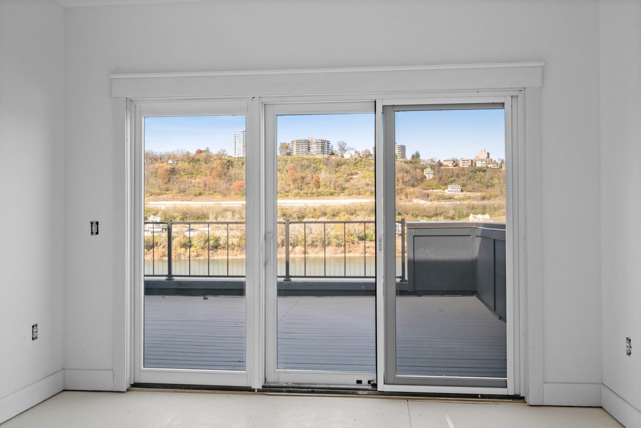 Unit 403 is one of only two penthouses on the fourth floor, showcasing an expansive private balcony with sweeping river views. Finishing construction now, but you can already see the bright, open layout!