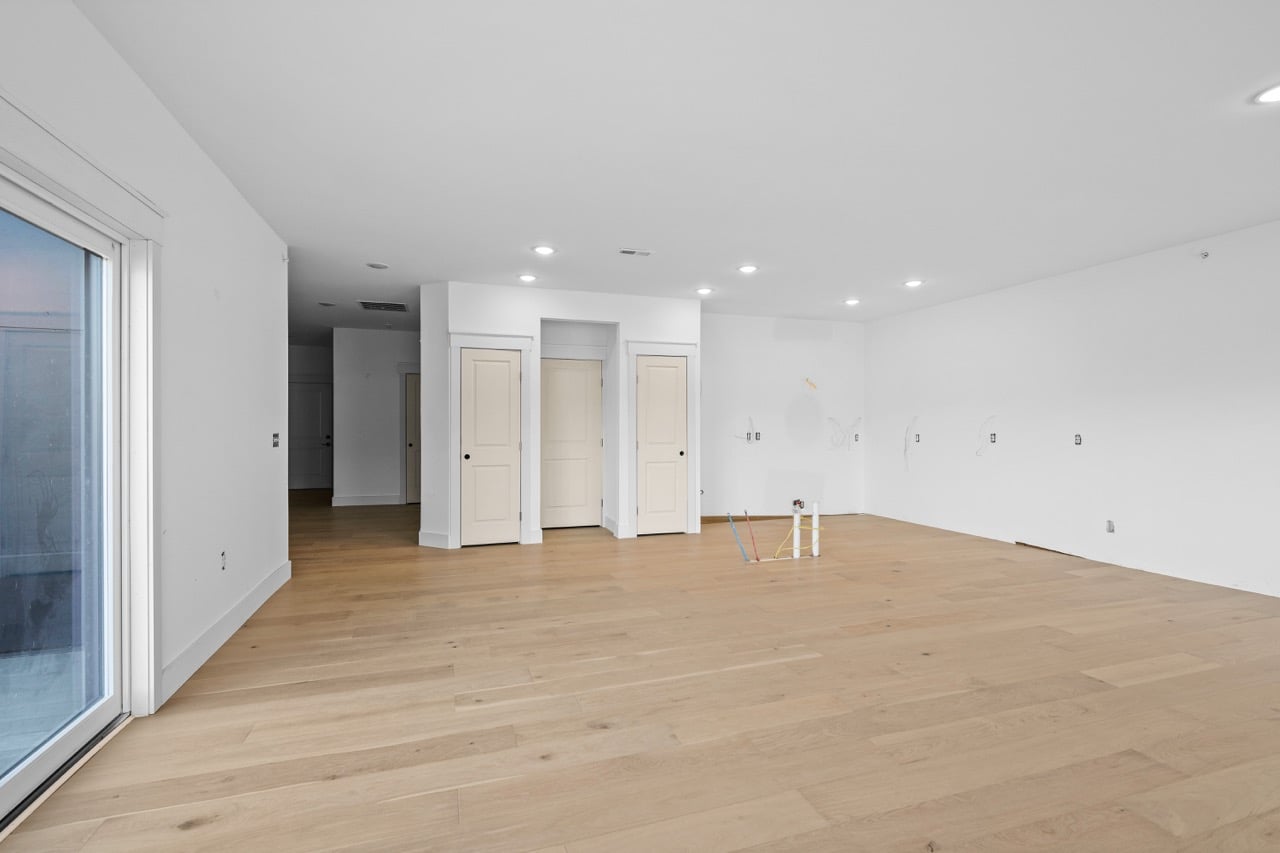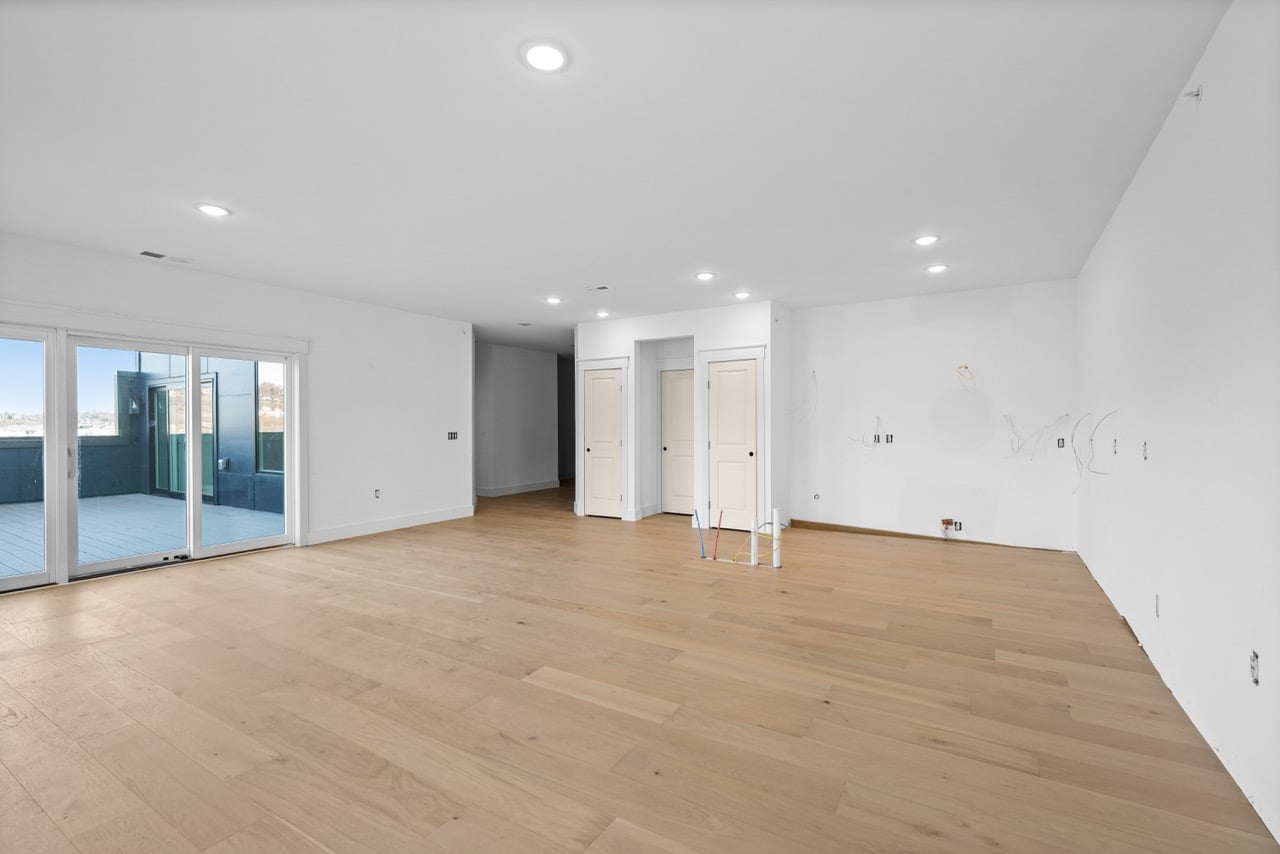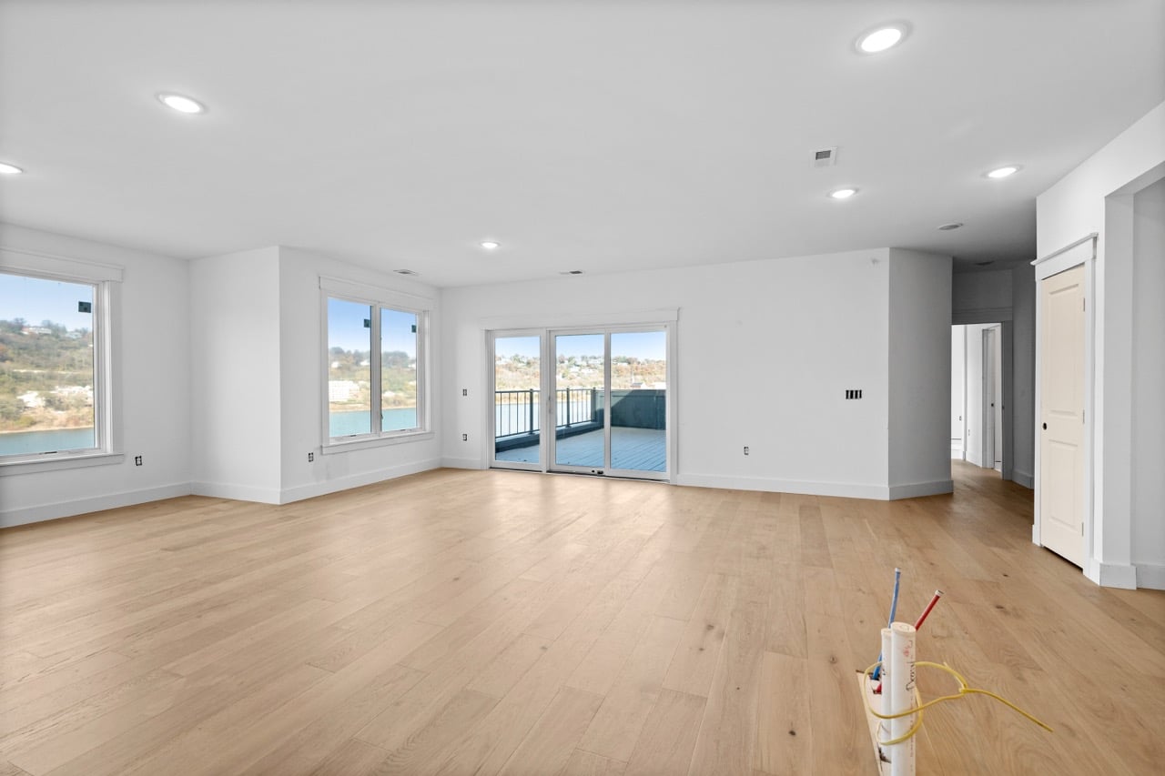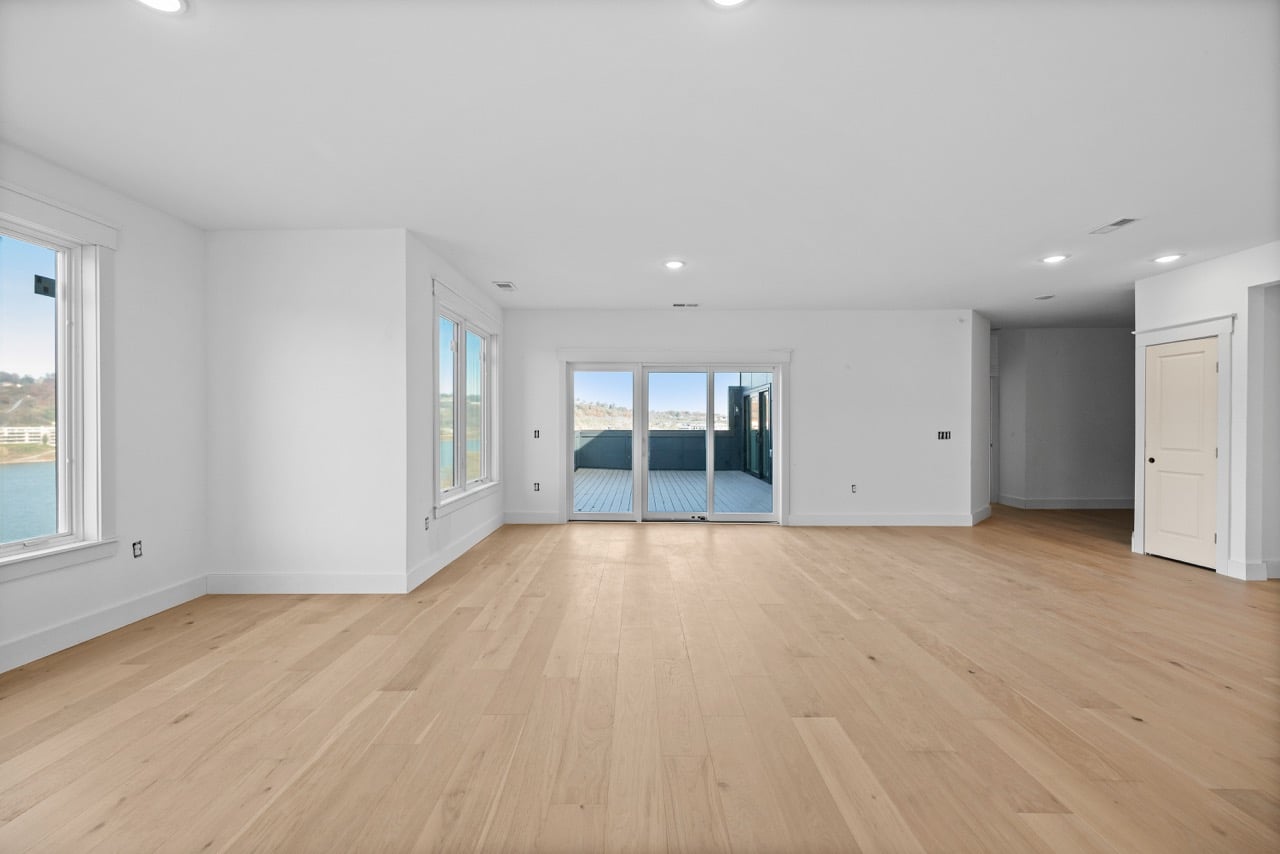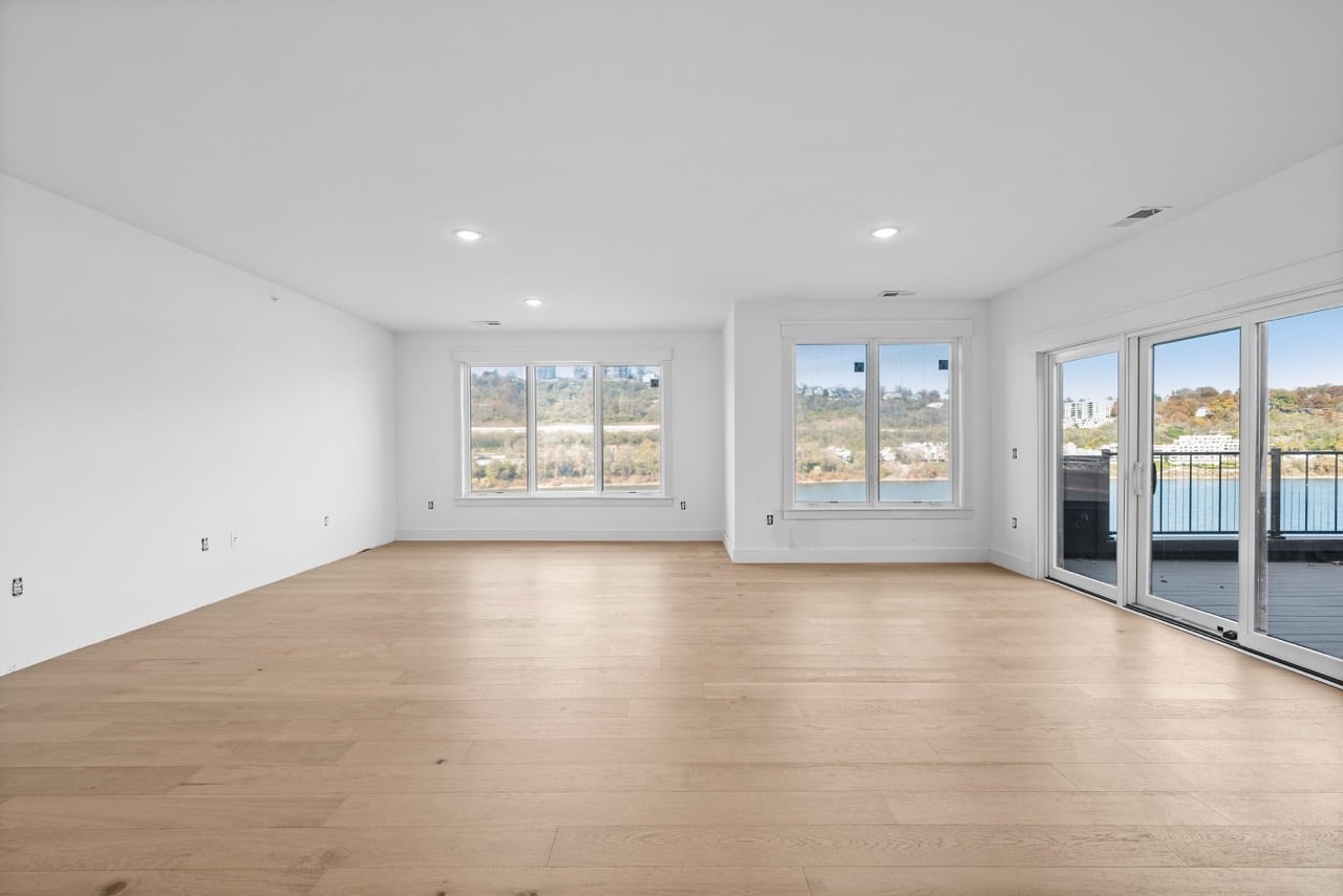 Unit 403 is one of only two penthouses on the fourth floor, showcasing an expansive private balcony with sweeping river views. Finishing construction now, but you can already see the bright, open layout!