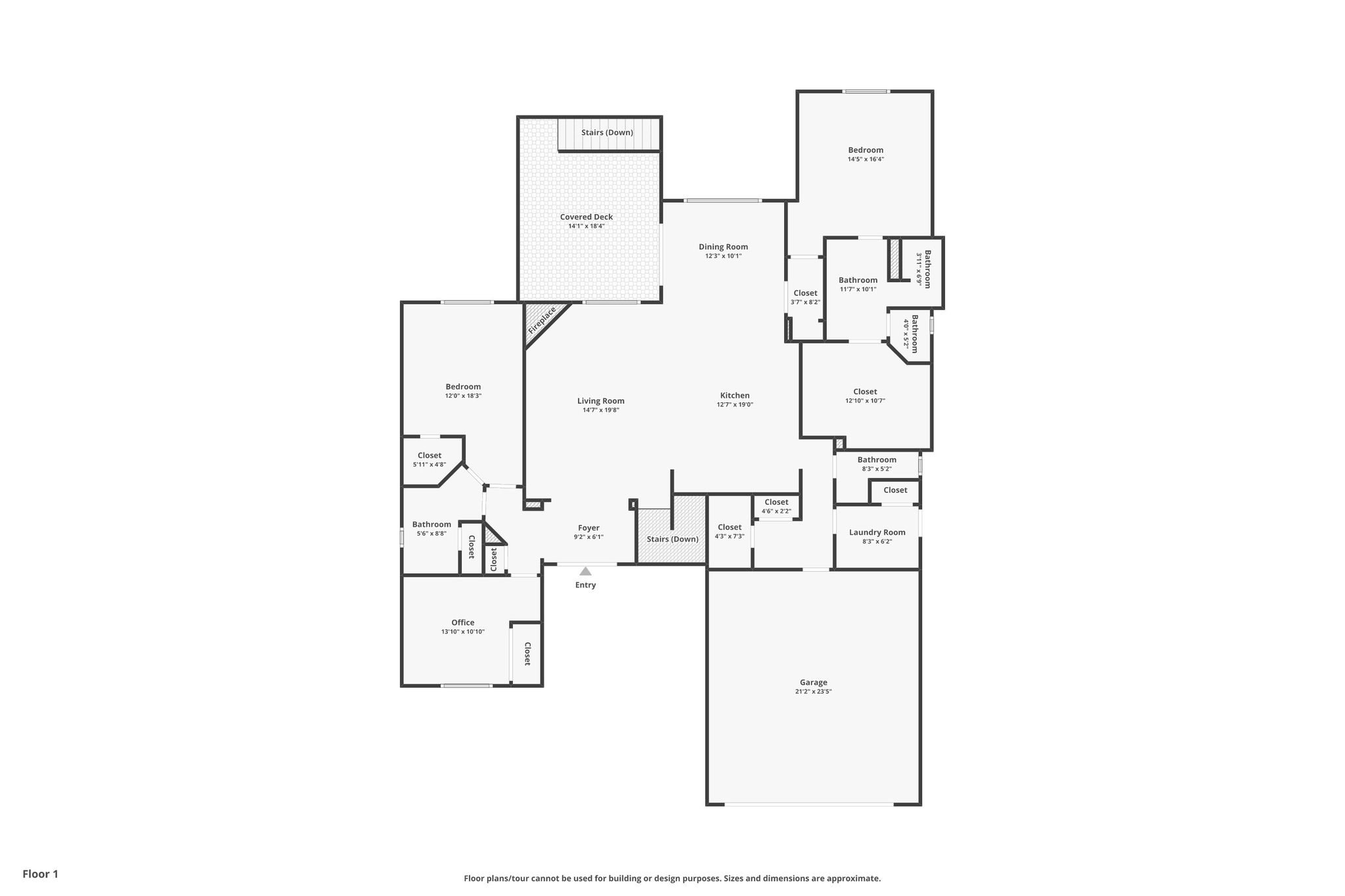 The bright, open main level features a great room with a unique ceiling and a cozy fireplace. The gourmet kitchen includes granite countertops, white cabinetry, a stylish backsplash, and a convenient dining area.
