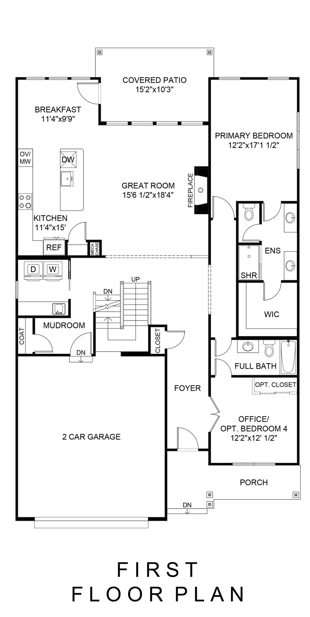 An open layout on the main floor invites a welcoming ambiance, with a designated office area boasting double doors, detailed ceilings in the great room and an impressive eat-in kitchen with modern quartz countertops.